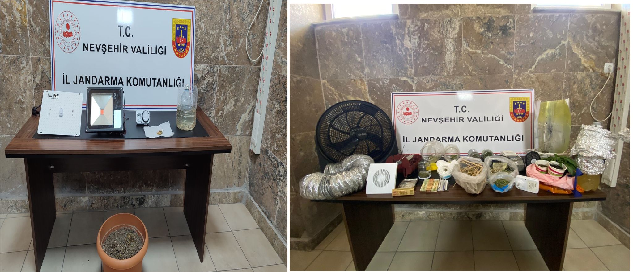 Nevşehir İl Jandarma Komutanlığı’nın uyuşturucu ile mücadelesi sürüyor. Nevşehir Cumhuriyet Başsavcılığı koordinesinde “Uyuşturucu veya Uyarıcı Madde İmal Eden ve Kullanan” şahıslara yönelik icra edilen “Narkoçelik Operasyonu” kapsamında, 07.05.2024 günü eş zamanlı olarak 16 adres ve 11 şüpheli şahsa yönelik yapılan arama neticesinde; 5 adet İklimlendirme Sistemi, 408 gram metamfetamin, 168 gram skunk, 1199 gram kubar esrar, 20 gram toz esrar, 1 kök kenevir bitkisi, 5 gram kenevir tohumu, 2 adet esrar öğütme aparatı, 1 adet uyuşturucu kullanma aparatı, 3 adet hassas terazi, 37 adet sentetik hap, 3 adet ruhsatsız tabanca, 1 adet ruhsatsız av tüfeği, 3 adet tabanca şarjörü ve 8 adet tabanca fişeği ele geçirildi. Olayla ilgili 11 şüpheli şahıs gözaltına alınırken şüphelilerin adli tahkikatına başlanıldı.