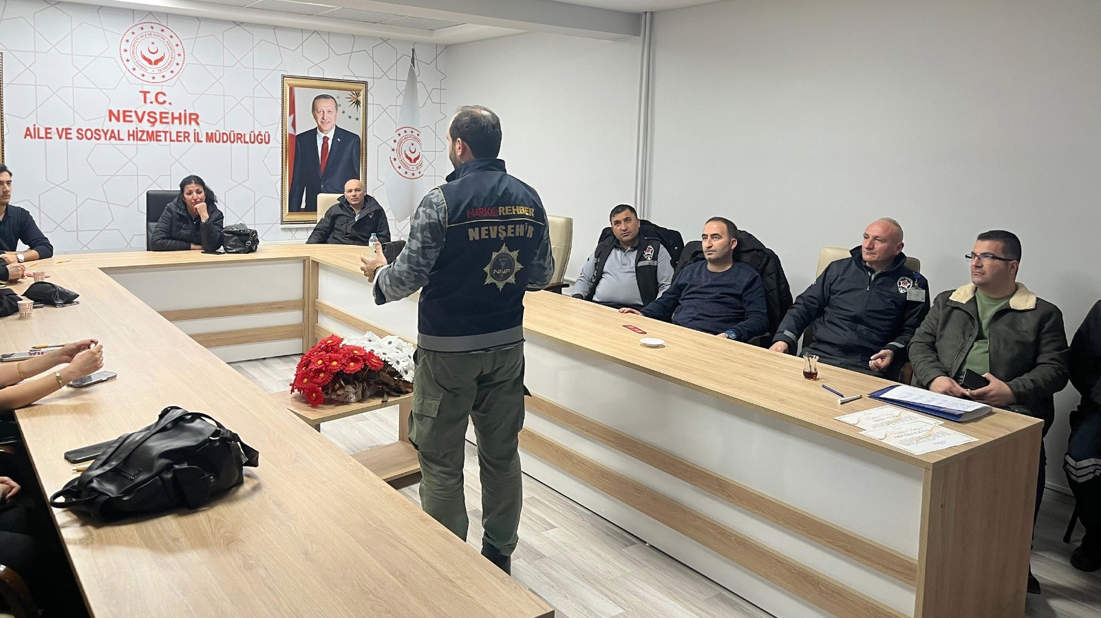 Narkotik Suçlarla Mücadele Şube Müdürlüğü bilgilendirme çalışmaları sürüyor. Narkotik Suçlarla Mücadele Şube Müdürlüğü tarafından bilgilendirme faaliyetleri Nevşehir Aile Hizmetleri Konferans Salonunda Özel Güvenlik görevlilerine ve ilimiz Kültür Merkezi’nde sahnelenen “Sahte Cennet” isimli tiyatro öncesi ve sonrası olmak üzere katılımcılara yönelik yapılan etkinlikte UYUMA Projesi, Narko Nokta, Narko Rehber, Narko Kaan, Narko Göçmen, NARVAS, Foto Blok, Metamfetamin Modülü, En İyi Narkotik Polisi Anne ve Önleyici Faaliyetlerimiz hakkında bilgilendirme yapıldı.