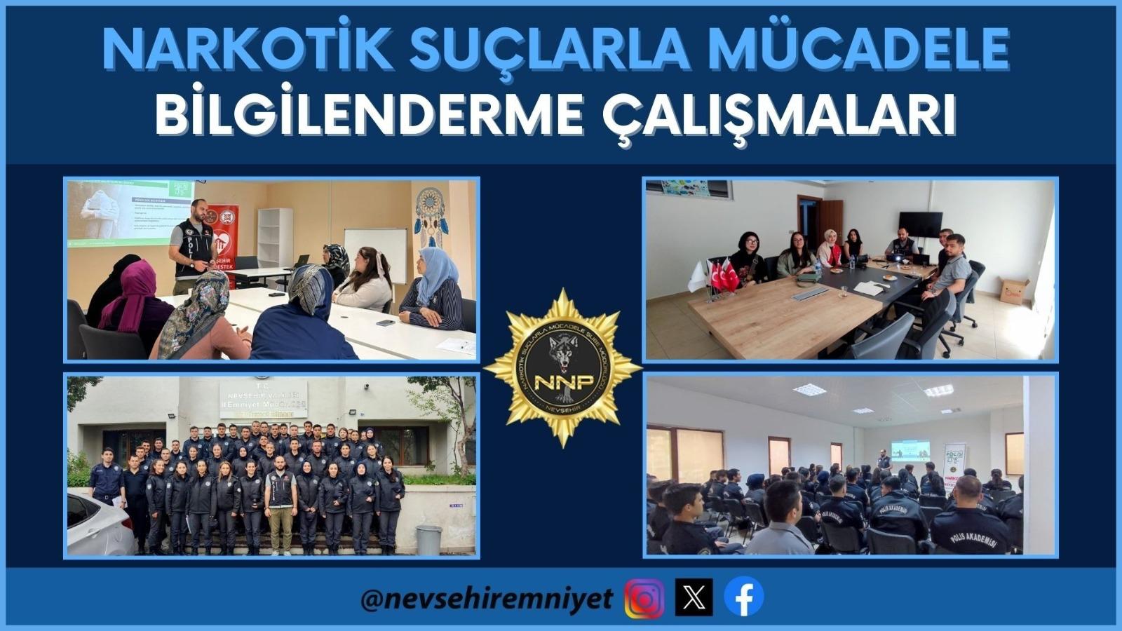 Narkotik Suçlarla Mücadele Şube Müdürlüğü tarafından bilgilendirme faaliyetleri çerçevesinde 22-29 Nisan tarihleri arasında ADEM kursunda kurs gören anne ve anne adaylarına, Yeşilay gönüllüsü katılımcılara ve POMEM’de eğitim gören polis adaylarına yönelik UYUMA Projesi, Narko Nokta, Narko Rehber, Foto Blok, Metamfetamin Modülü, En İyi Narkotik Polisi Anne ve Önleyici Faaliyetlerimiz hakkında bilgilendirme yapıldı.