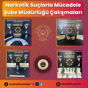 Şube Müdürlüğü Çalışmaları aralıksız sürüyor. Narkotik Suçlarla Mücadele Şube Müdürlüğü ekiplerince son bir hafta içerisindeyapılan çalışmalarda; meydana gelen 20 farklı olayada 899,54 gr. metamfetamin, 553,77 gr. skunk esrar, 14,69 gr. bonzai, 9,09 gr. kubar esrar, 13 Adet captagon, 9 Adet sentetik ecza, 2.965.000,00 TL ve 5 kök hint kenevir bitkisi ve çok sayıda uyuşturucu madde kullanım aparatı ele geçirildi. Uygulamalarda şüpheli 25 şahıs hakkında gerekli işlemler yapılırken 2 şahıs hakkında Adli Kontrol kararı verildi ve 3 şahıs tutuklandı.