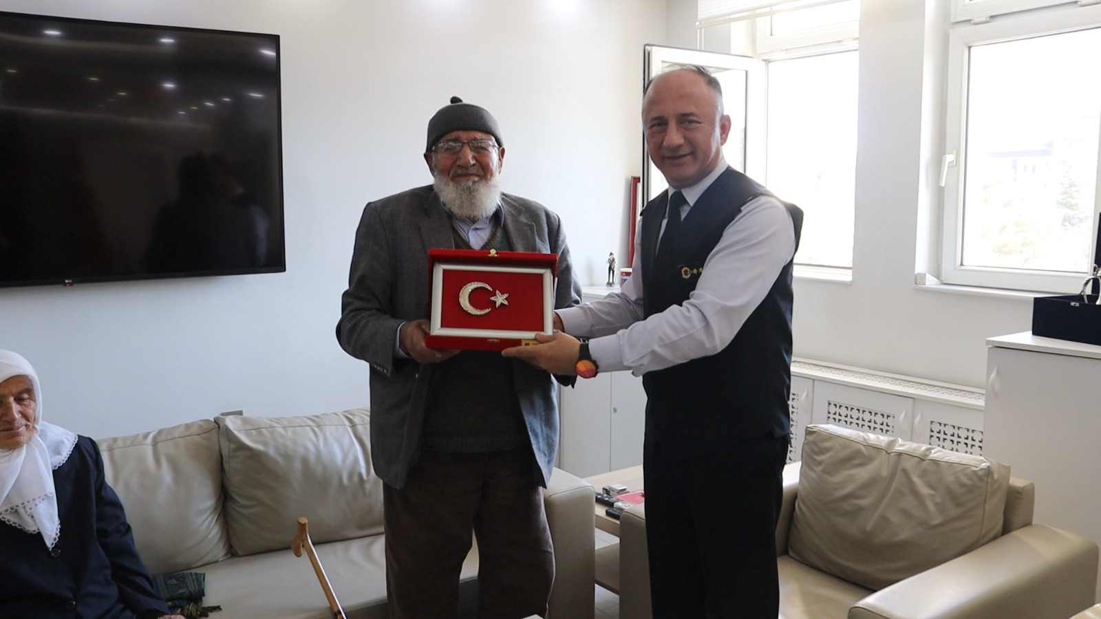 Jandarma Teşkilatına olan sevgisi ve vatan sevgisi ile gönüllere taht kuran Necati amcaya Nevşehir İl Jandarma Komutanı Jandarma Albay Numan Öksüz tarafından flografi işlemeli Şanlı Türk Bayrağı ve Jandarmaya ait Şualı Ayyıldız hediye edildi.