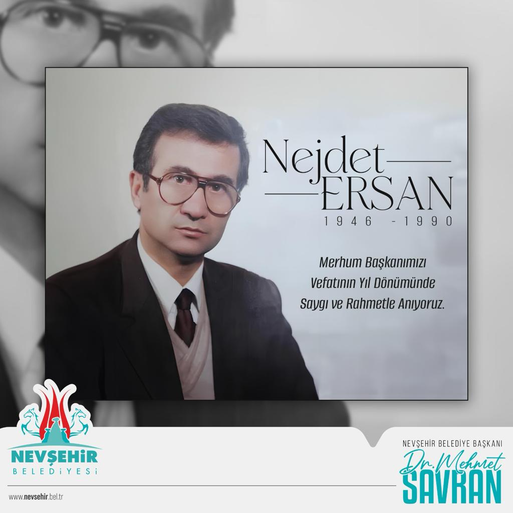 “Bu topraklarda doğup büyüyen Nejdet Ersan, hizmet ve icraatları ile şehrimizin gelişmesine büyük katkı sağlayarak aziz hemşehrilerimin gönlünde müstesna bir yere sahip olmuştur. Nevşehirliler, ülkesine ve milletine önemli hizmetlerde bulunan Nejdet Ersan’ı daima rahmetle anacak ve asla unutmayacaktır. Merhum Nejdet Ersan Başkanımızı, vefatının sene-i devriyesinde rahmet ve özlemle anıyoruz.”