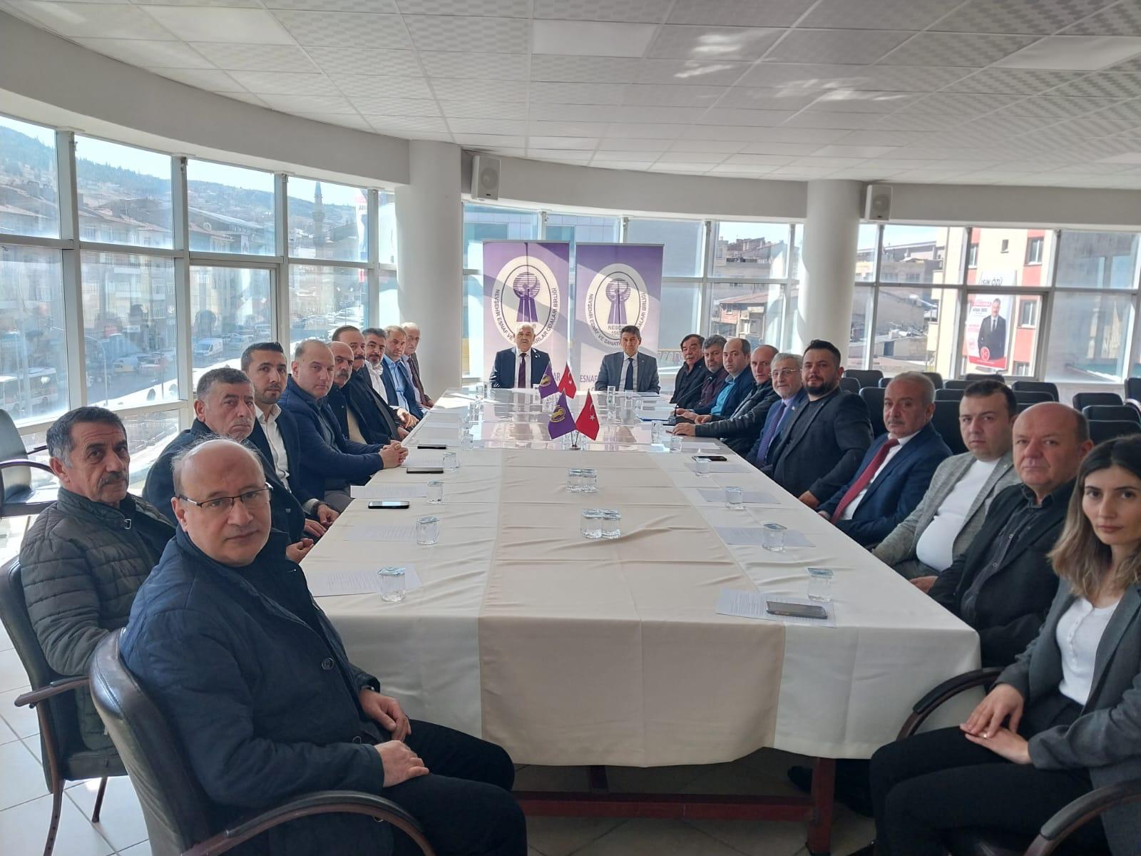 Nevşehir Esnaf ve Sanatkarlar Odaları Birliği Başkanı Mehmet Pınarbaşı ev sahipliğinde gerçekleşen toplantıya İş-Kur İl Müdürü Şinasi İnanıcı ve ilgili uzman personeller ile Oda Başkanları katılım sağladı.