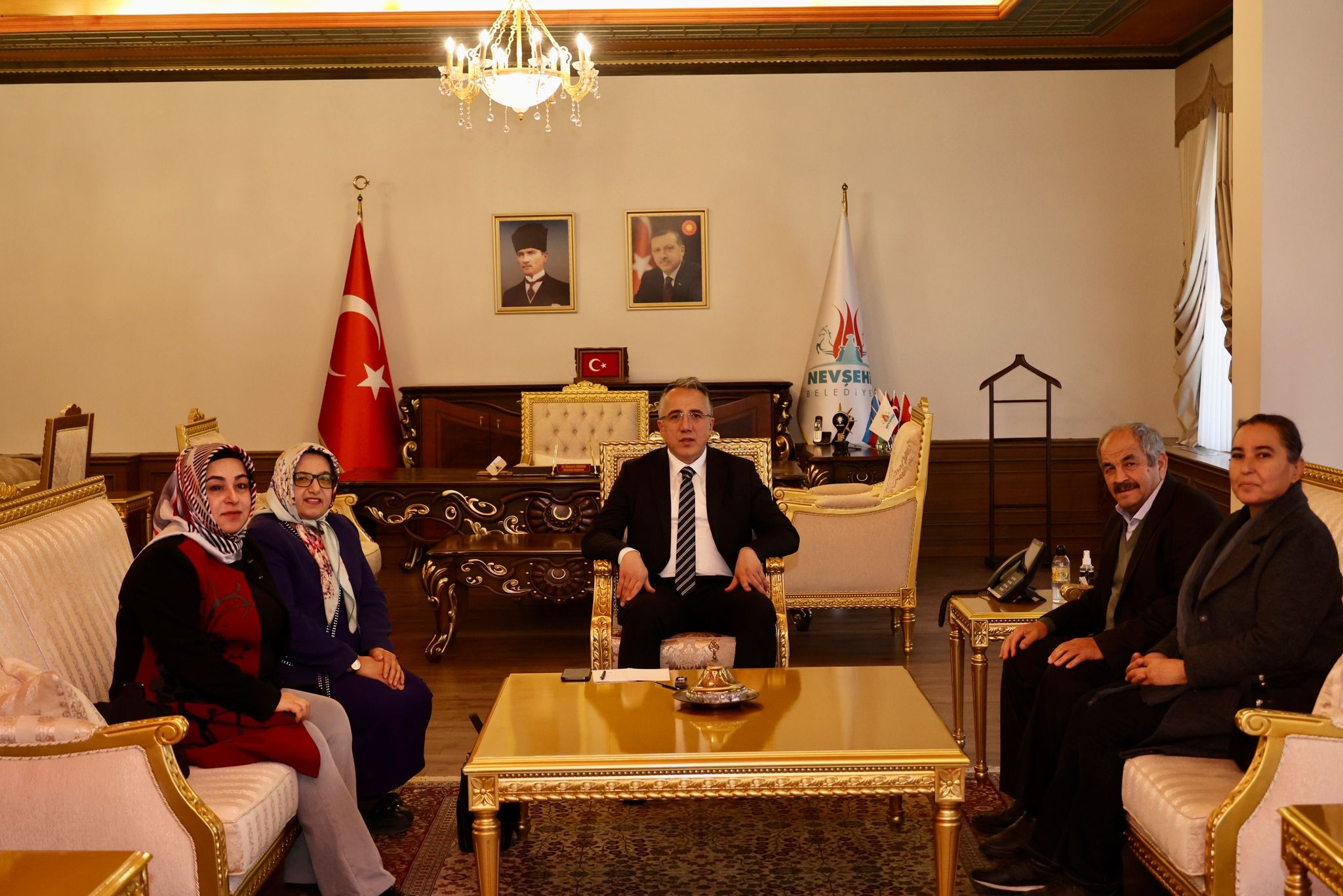 Nevşehir Kadın Derneği Başkanı Makbule Atlı ve dernek yöneticileri Nevşehir Belediye Başkanı Dr. Mehmet Savran’ı makamında ziyaret etti.