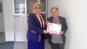 Nevşehir Kadın Derneği Başkanı Makbule Atlı, derneğin faaliyetlerine olan katkılarından ötürü Gazeteci Menderes Kestiren’e teşekkür belgesi takdim etti.