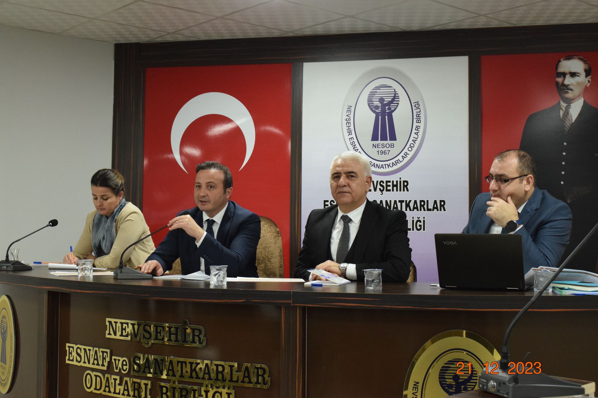2024 yılı Şubat ayında Cumhurbaşkanımız Recep Tayyip ERDOĞAN’ın teşrifleriyle gerçekleşecek olan 6’ıncı Esnaf Şurası hazırlıkları kapsamında esnaf ve sanatkarların sorunlarının yerinde tespit edilmesi amacıyla Ticaret Bakanlığı Esnaf ve Sanatkarlar Genel Müdürlüğü tarafından Nevşehir- Aksaray- Niğde ve Kırşehir illeri İstişare Toplantısı meslek kuruluşlarının katılımı ile Nevşehir Esnaf ve Sanatkarlar Odaları Birliği ev sahipliğinde ilimizde gerçekleştirildi.