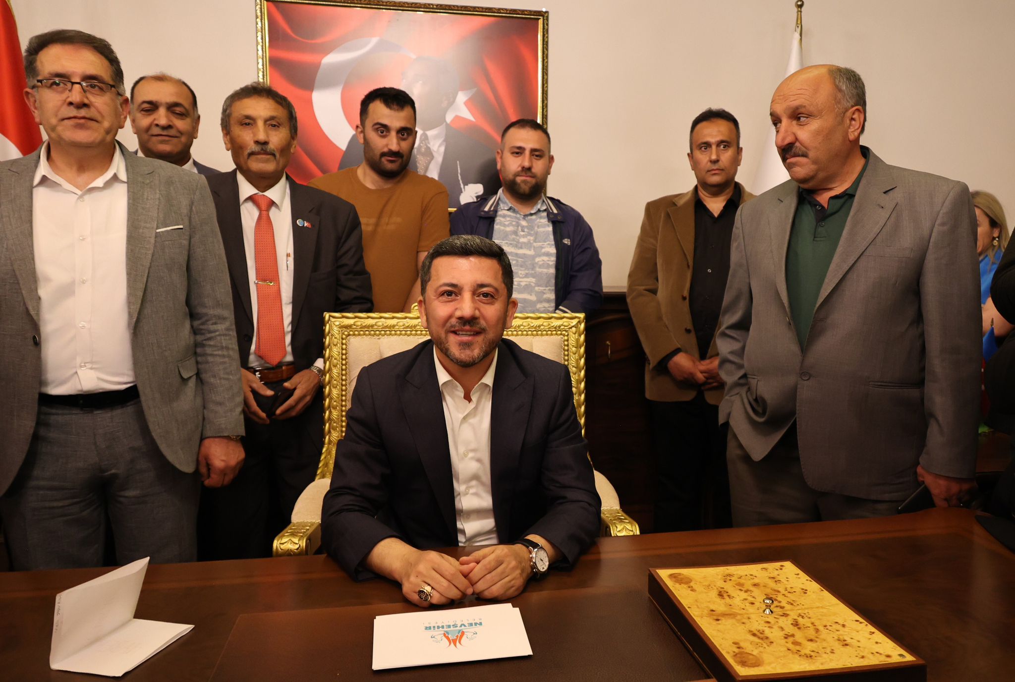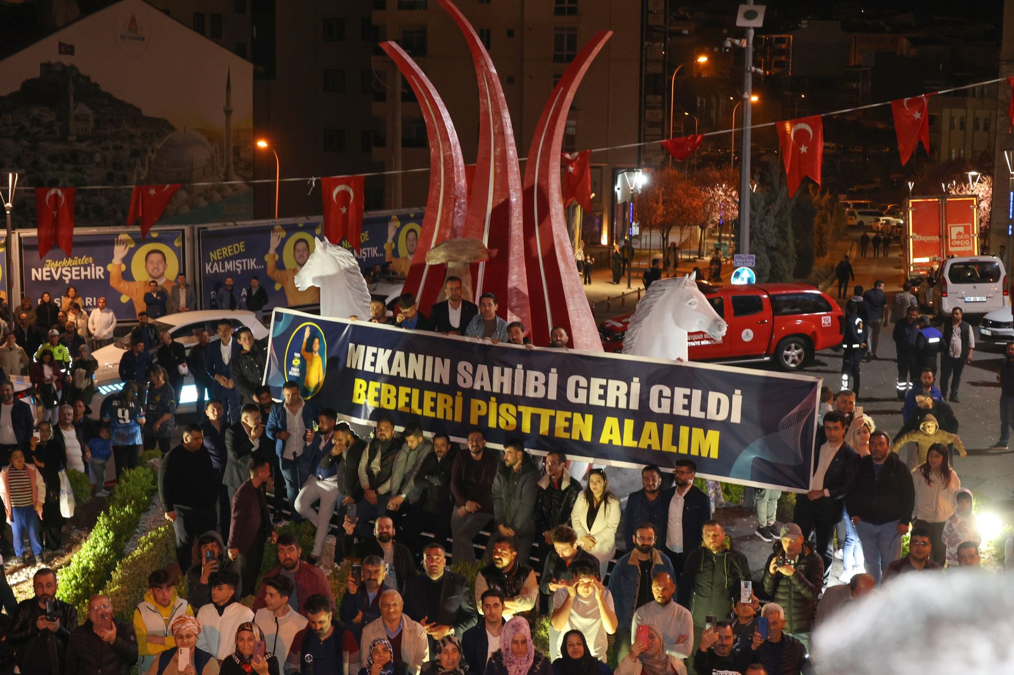 “Bu dakikadan sonra ayrımcılığa, ötekileştirmeye hayır. Kimsesizlerin kimsesi olmaya evet. Hakkı olan herkesin hakkını alacağı bir belediye vaat ediyorum. İster garip guruba olsun, ister fakir fukara olsun, ister parası olsun hakkı ise bu belediyeden hakkını alacağı bir belediye vaat ediyorum. Zengin olsa da haksızsa istediğini alamayacağı bir belediye vaat ediyorum. Parasına güvenen güvenmesin ama hakkı olan hakkına güvensin. Ben sabah mazbatamı alırken parti rozetimi çıkardım şu anda ben 124 bin Nevşehirlinin hizmetkârıyım. Bundan sonra Şeyh Edebali’nin Osman Gazi’ye öğüdü bizim rehberimiz olacak. Kırgınlığımız, kızgınlığımız kimseye yoktur. Tek kriterimiz adalet ve haktır. Adaletsizlik, haksızlık edenin karşısında dün olduğu gibi bugünde dimdik duracağız. Lakin garibin, fakirin, fukaranın, kimsesizin, ötekileştirilmişin dizinin dibinde samimiyetle oturup mütevazı olacağız. Yani hak edenin ayağının türabı olacağız. Ama şehrin menfaatine göz diken kim olursa olsun dünkü gibi dimdik durup ‘Kapadokya’nın merkezi Nevşehir diyecek’ büyüklükte olacağız. İşte böyle bir belediye vaat ediyoruz. Anlamayan herhalde sağır sultan kalmamıştır. Sağır sultan duyana dek diye bir paylaşımım var. Hala sosyal medyamın başında sabitlediğim. Sağır sultanlar duyana kadar, kulakları sağır, gözleri kör, kalpleri mühürlü, dilleri lal olanların dilini açana, gözünü açana, kalbindeki mühürü kırıp atana, hakikati söylemeyen dilini bülbül edene kadar hakkı, hakikati Nevşehir’in menfaatlerini dile getirmeyen namert olsun. İşte bundan sonra bu iş böyle. Memnun olan baş göz üstüne. Memnun olmayanında yolu açık olsun. Şiarımız, parolamız, hedefimiz ve yol haritamız budur. O yüzden duyanlara, duymayanlara duyurana kadar parolamız, hedefimiz, sözümüz bu olacak. Bu söze inanan, bu sözün gerçekleşmesini arzu edenlerle şehrimizi ilanihaye devam ettireceğiz. Hala buna rağmen bu şehrin menfaatini gelişmesini engellemeye çalışanlarda anladığı dilden dün nasıl konuştuk isek bundan sonrada aynen konuşmaya devam edeceğiz. Gönlünüz rahat olsun. Asla bu sevgiye, bu muhabbete, bu kardeşliğe ihanet etmeyeceğim. Benden duymadığınız, benim söylemediğim hiçbir şeye itibar etmeyin. İyiyi de, kötüyü de, yapabileceğimi, yapamayacağımı, neden yaptığımı, neden yapamayacağımı size şeffaf bir şekilde açıklayacağımdan her biriniz adınız kadar emin olabilirsiniz. Şeffaflık, kardeşlik, heyecan ve sevgi dönemi başlamıştır.”