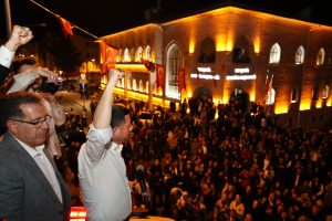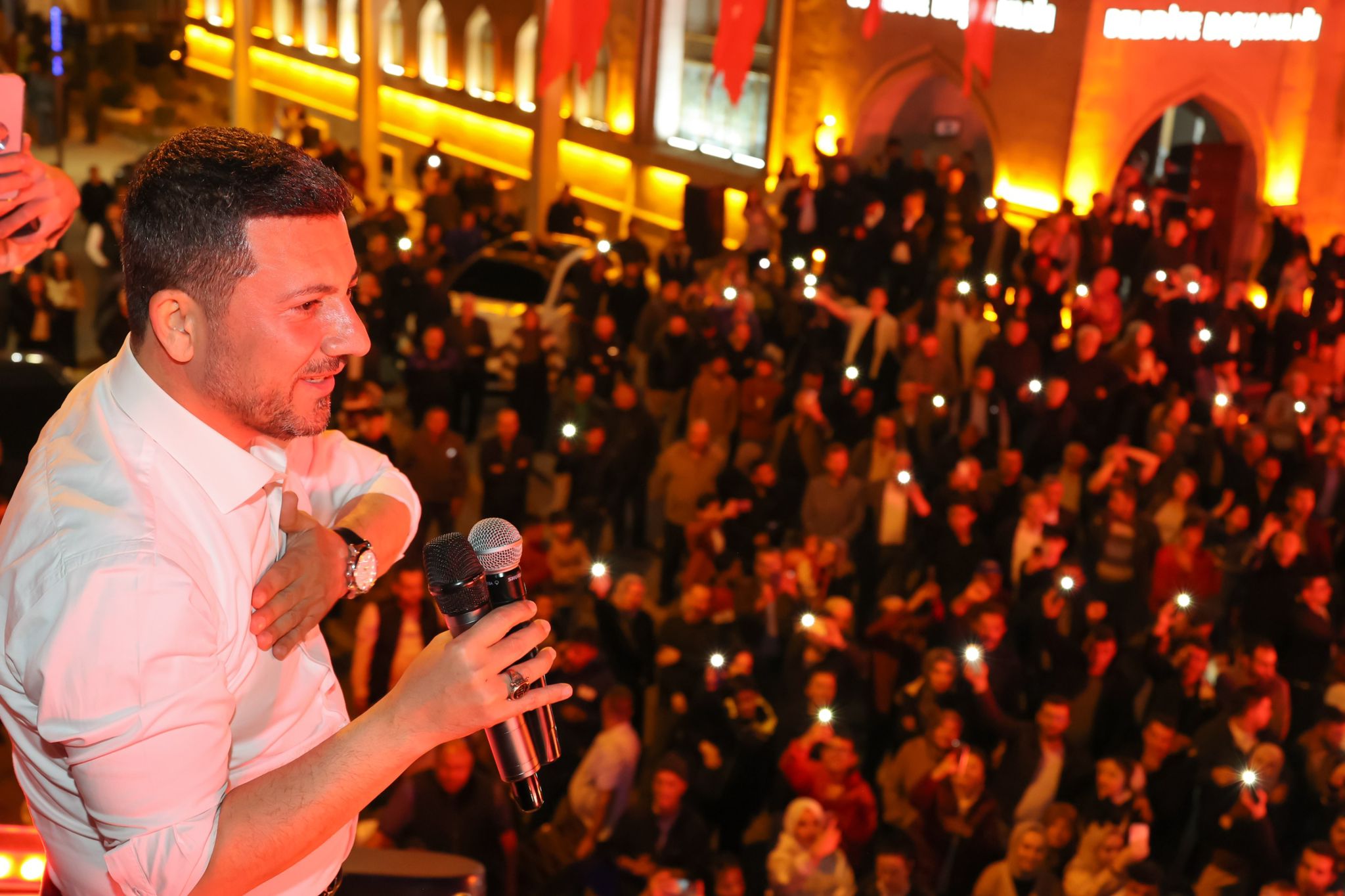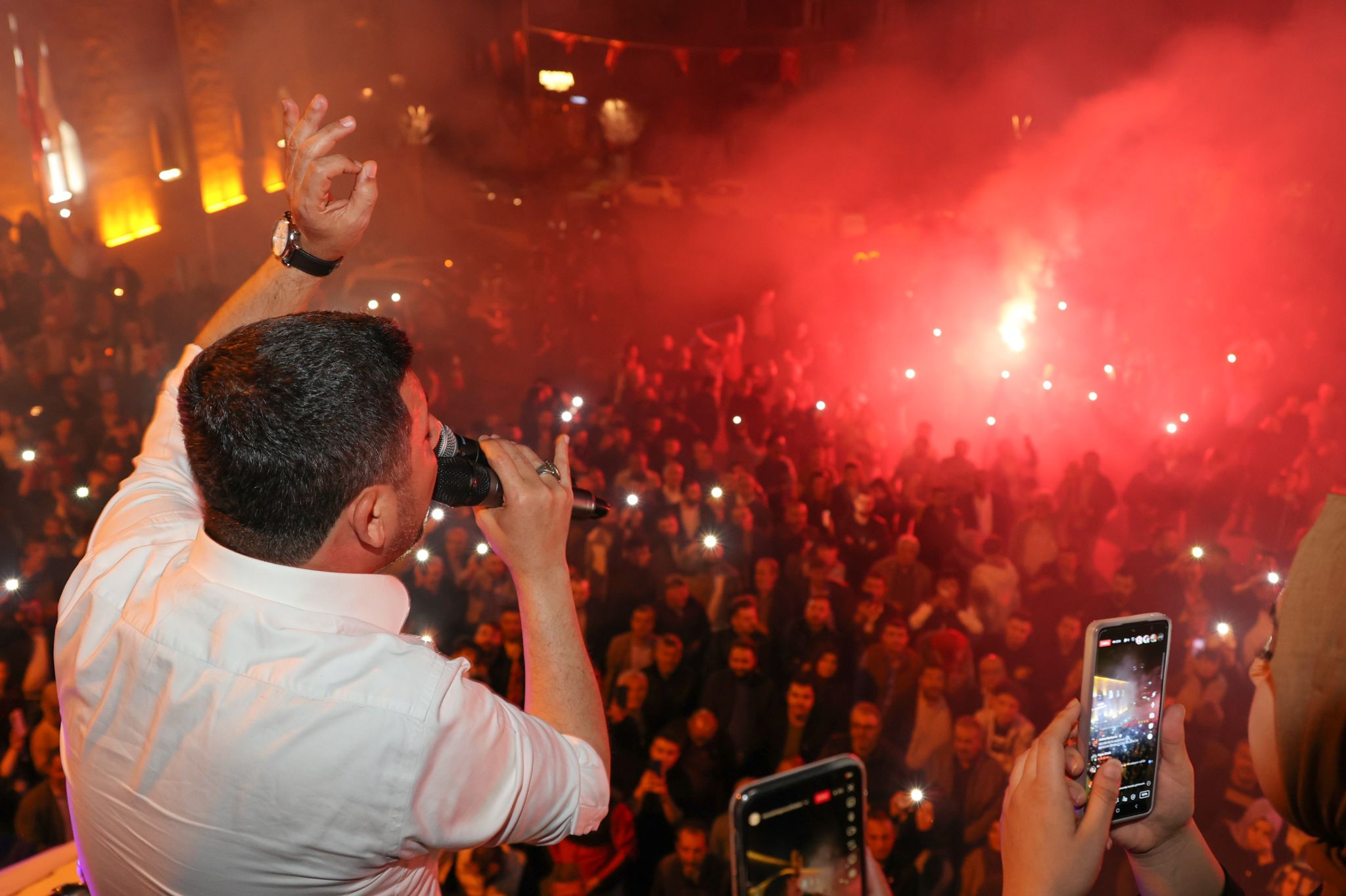 Arı’nın konuşması sık sık kalabalık grup tarafından alkışlarla ve sloganlarla kesilirken konuşma sonrasında gerçekleştirilen havai fişek gösterisi geceye renk kattı.