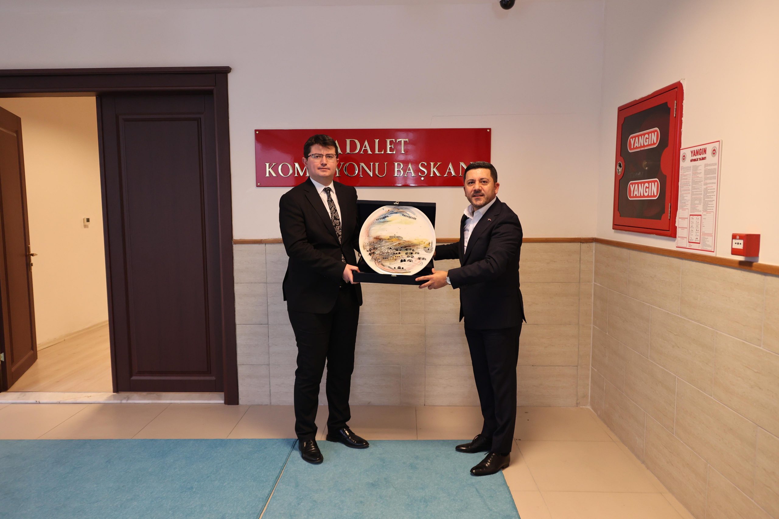 Makam ziyaretleri kapsamında iadeyi ziyaretlerde bulunan Belediye Başkanı Rasim Arı, sırasıyla Adalet Komisyonu Başkanı Ali İhsan Tabak, 1.Ağır Ceza Mahkemesi Başkanı Rıdvan Oğuz, Cezaevi ve İnfaz Savcısı Onur Küçükkaraca ve Baro Başkanı Av. Necmi Öncül’ü ziyaret ederek ziyaret anısına plaket takdim etti.
