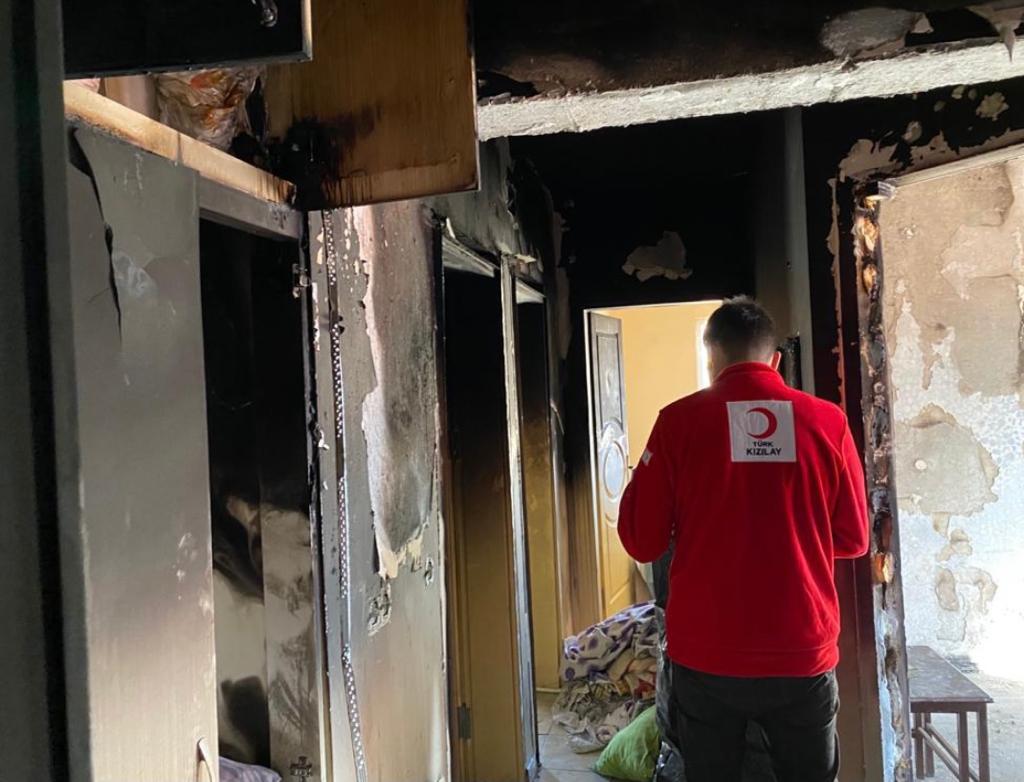 Kızılay Nevşehir’de evi yanan vatandaşın yanında