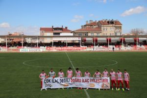 10.04.2022 Pazar günü saat 15:00’de Nevşehir Gazi Stadı’nda oynanan Nevşehir Belediyespor – Belediye Kütahyaspor TFF 3. Lig 1. Grup müsabakasına Nevşehir Belediyespor takımı maç öncesinde seremoniye ” Çok İlaç Değil !,Doğru İlaç İyileştirir.” ibareli pankartı açarak, doğru ve bilinçli ilaç kullanmanın önemine dikkat çekti.