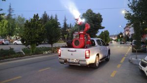 Sağlık Bakanlığı tarafından ruhsatlı ilaçlar kullanılarak ilaçlama faaliyetlerini sürdüren Nevşehir Belediyesi Temizlik İşleri Müdürlüğü ekipleri; 6 adet ilaçlama aracı ve 12 personel ile sivrisinek ve karasinek türlerinin yaygınlaşmasını engellemek amacıyla her gün düzenli ilaçlama yapıyor.