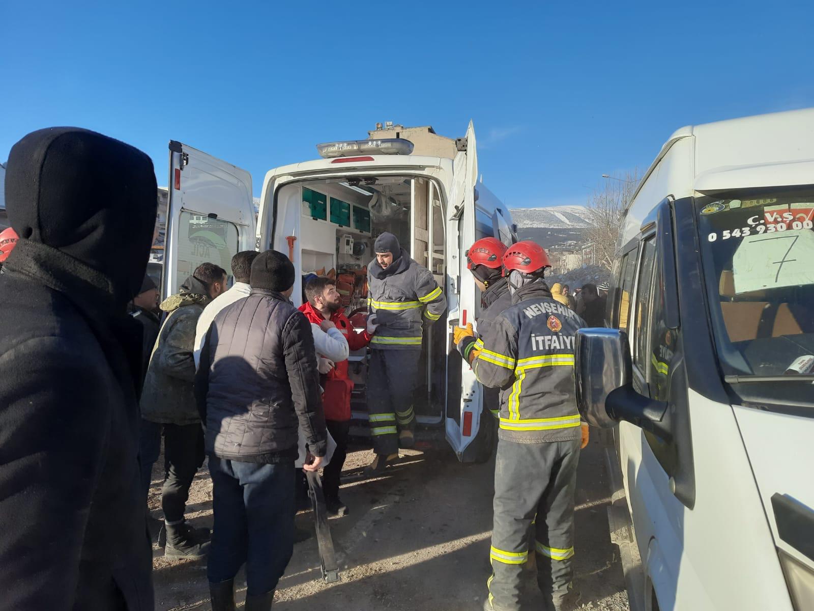 Nevşehir Belediyesi İtfaiye Müdürlüğü ekipleri, dün akşam saatlerinde Kahramanmaraş’a ulaşarak, arama kurtarma çalışmalarına başladı. 1 ilk müdahale aracı ve 1 tam donanımlı arama kurtarma aracı ile Kahramanmaraş’a giden Nevşehir Belediyesi’nin 9 kişilik personeli, enkaz altındaki vatandaşları kurtarıyor. Ekipler, gerçekleştirdikleri çalışmalar ile bugün iki vatandaşımızı enkaz altından kurtarmayı başardı.