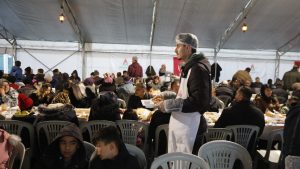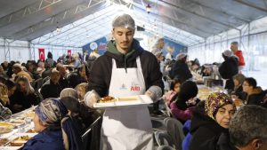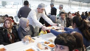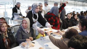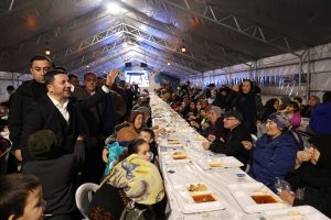 Nevşehir Belediyesi tarafından Kapadokya Kültür ve Sanat Merkezi önüne kurulan iftar çadırında binlerce kişi iftarını açıyor.