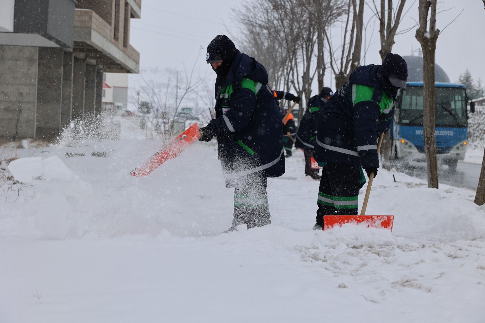 Nevşehir Belediyesi ekipleri 2 gündür devam eden kar yağışı nedeniyle günlük yaşamın olumsuz etkilenmemesi için çalışmalarına devam ediyor.