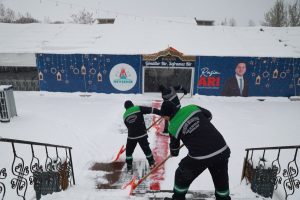 Başkan Arı “Kar yağışı ve tipiye karşı ekiplerimiz sahada aralıksız çalışıyor. Şehir merkezinde ve ana güzergahlarda kesintisiz ulaşımı sağlamak, yaya güvenliğini teminat altına almak için 7/24 esasına uygun çalışmaya devam edeceğiz.” ifadelerini kullandı.