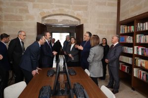 Törende, açılış kurdelasının kesilmesinin ardında Vali Becel ve protokol üyeleri kütüphaneyi gezdi.