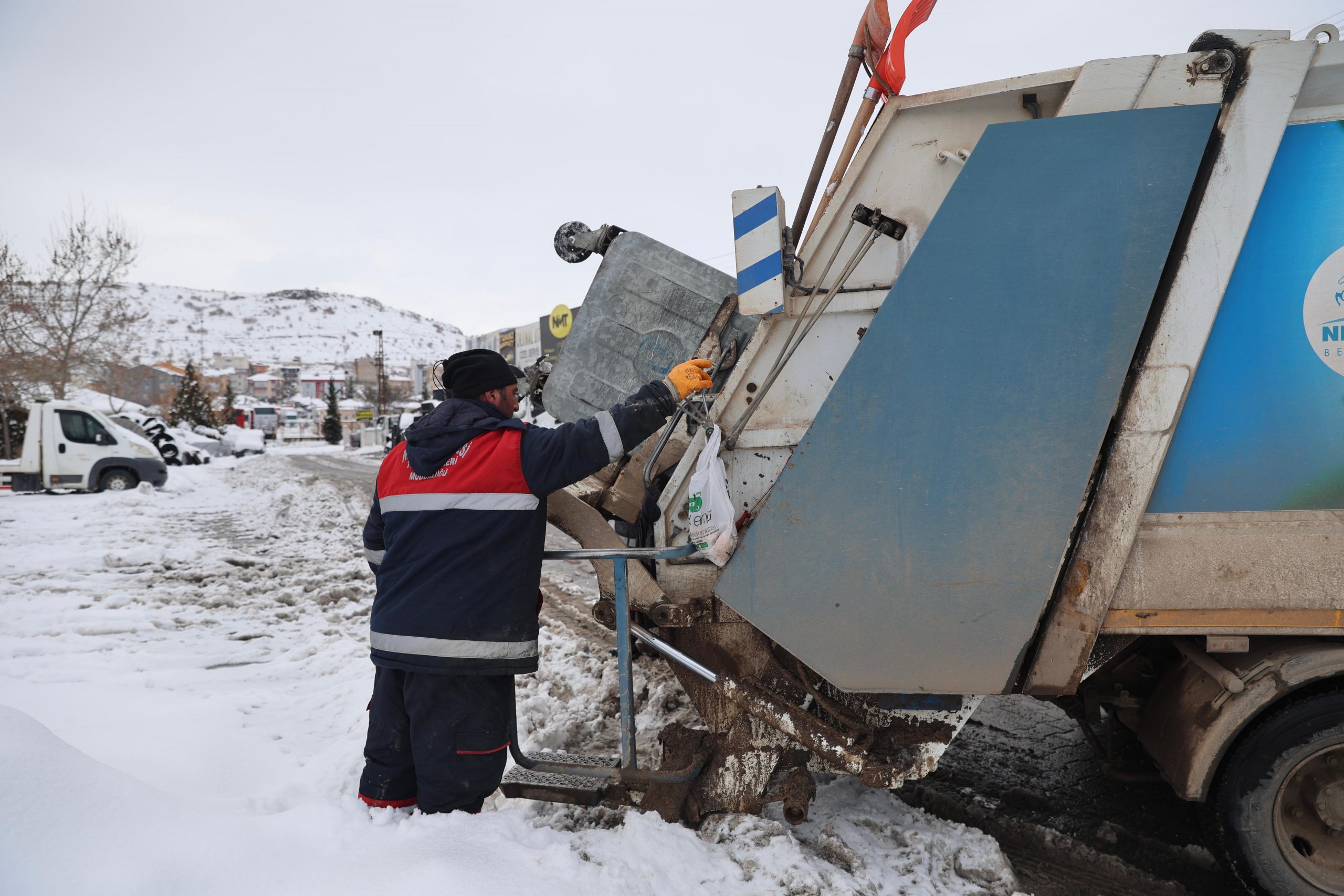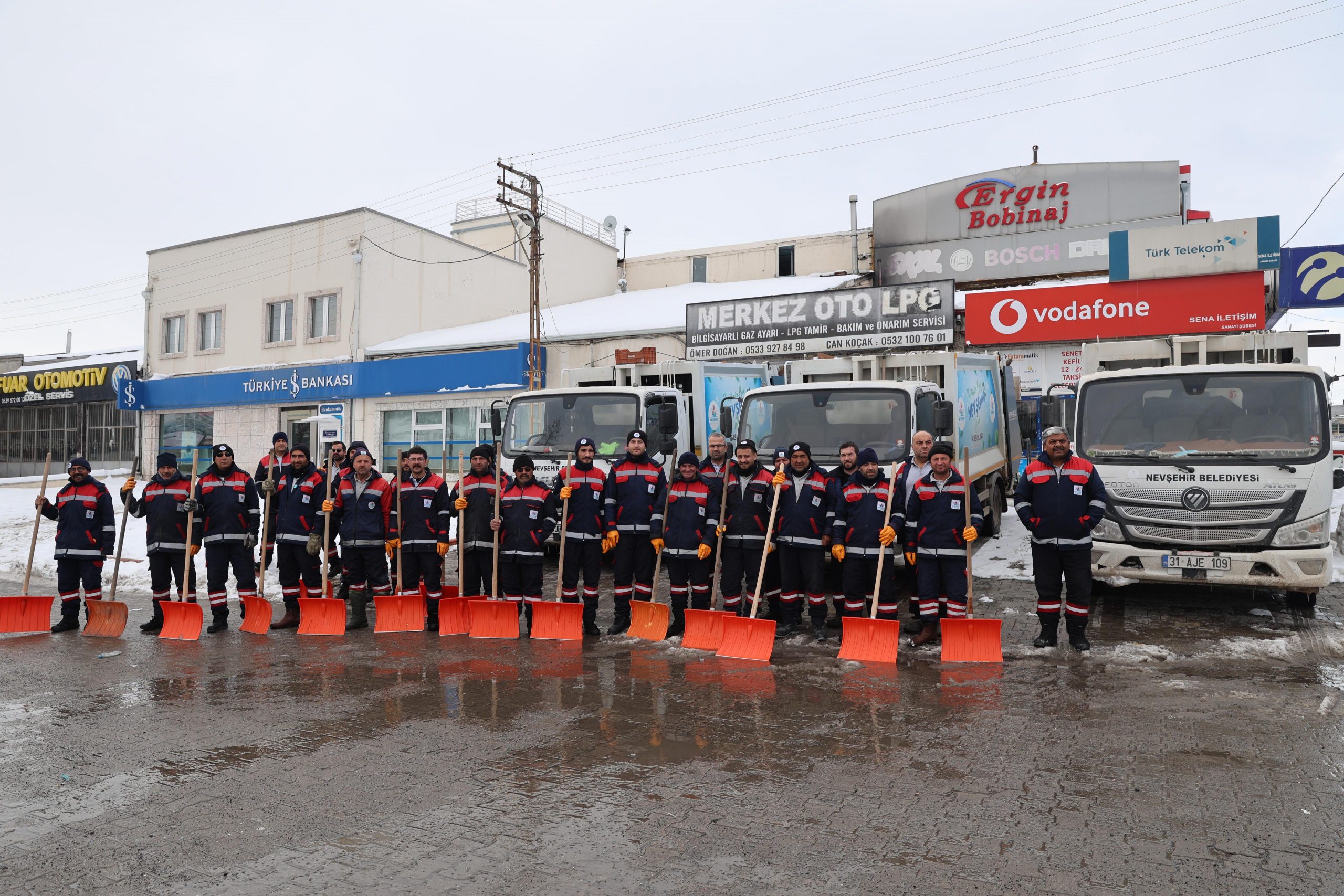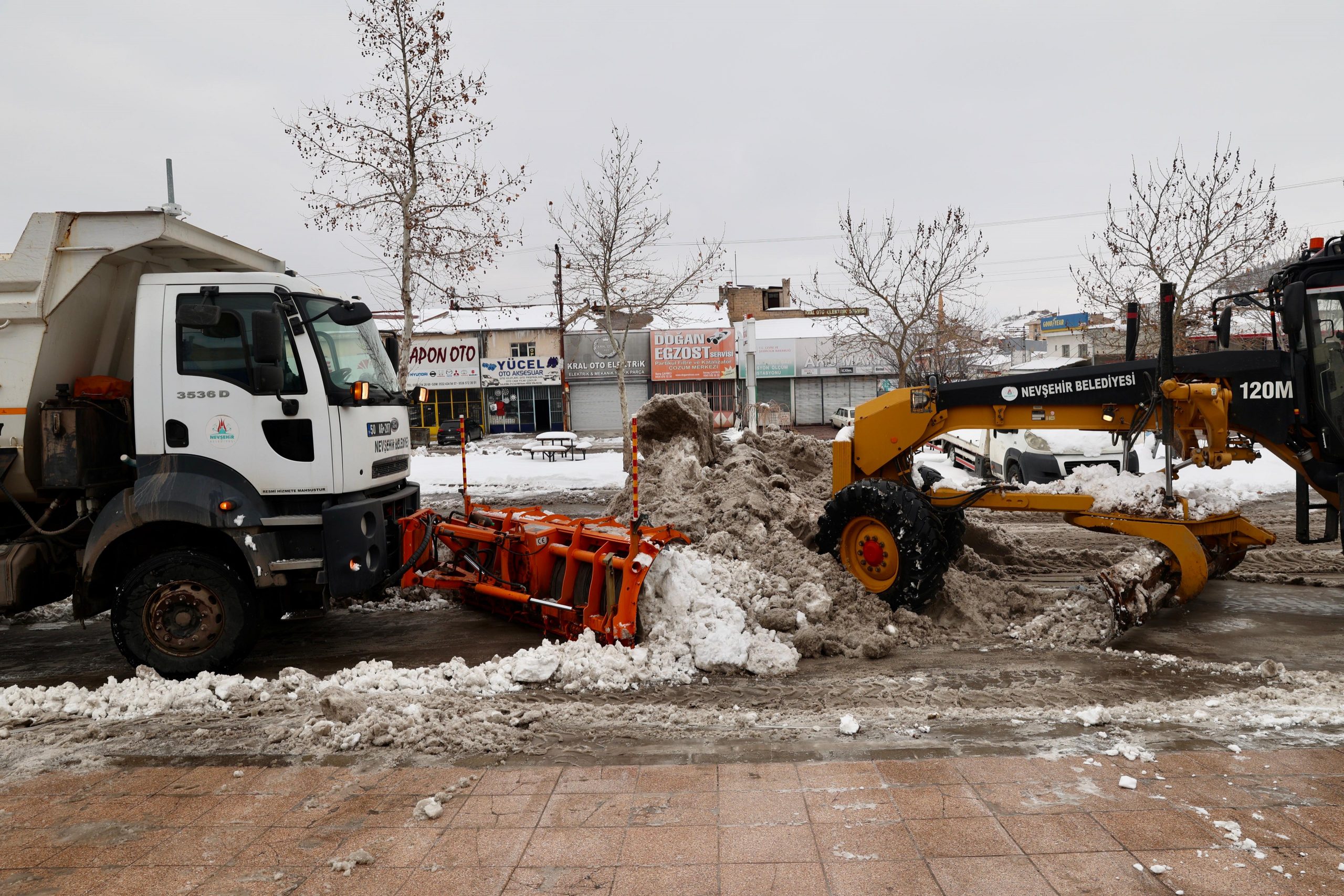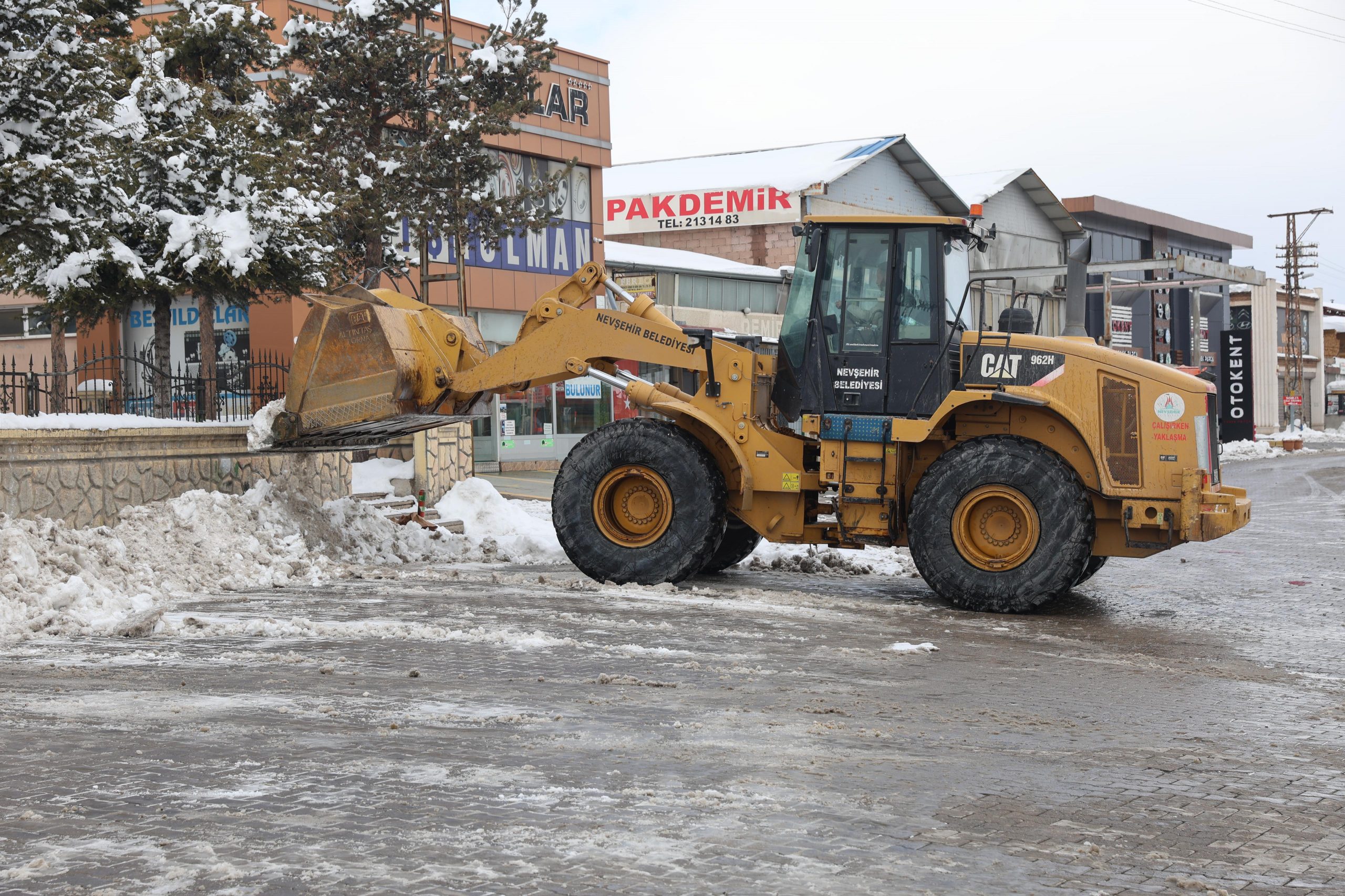 Son yılların en yoğun kar yağışının yaşandığı Nevşehir’de kentin tamamında toplam 52 araç ve 360 personelle yürütülen çalışmalarda bir yandan ulaşımda herhangi bir aksaklık yaşanmaması için yoğun mesai harcanırken, bir yandan da kent merkezindeki kar kütleleri iş makineleri marifetiyle şehir dışına taşınıyor.