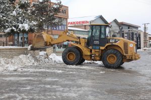 Trafikte ve çalışma alanlarında aksamaların yaşanmaması için özellikle gece saatlerinde ve devamında gündüz yapılan çalışmalarda, karla mücadele sırasında bazı sokak aralarında ve caddelerde biriken kar kütleleri iş makineleri yardımı ile kaldırılıyor.