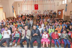 Oyunu öğrenciler ile birlikte izleyen Nar Belediye Başkanı Süleyman Özçelik, çocuklara çeşitli hediyeler dağıttı.