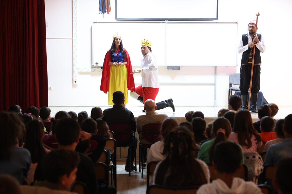 Nar Semih Aktekin Ortaokulu Ömer Halisdemir Konferans Salonu’nda sahnelenen oyunu Nar Barbaros İlkokulu öğrencileri de izledi.