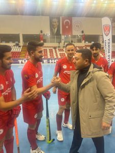 Müsabakayı yerinde takip ederek TRT Spor Yıldız kameralarına açıklama yapan Nevşehir Belediye Başkanı Rasim Arı “Bu sene Nevşehir Belediyesi olarak Hokey branşında ilk yılımız ve biz bu sporu daha çok kitleye ulaştırmak için yaygınlaştıracağız. Nevşehir hokey sporunu tam anlamıyla tanımıyor. Bu anlamda da şampiyon olmamız bizim açımızdan ve şehir açısından iyi olacak. Bu bugünkü maçı kazanarak şampiyonluk için bir adım attık. Sporcularımı ve teknik ekibimizi tebrik ediyorum. İnşallah önümüzdeki yıllarda hedeflerimizi Avrupa Şampiyonluğu da dahil olmak üzere büyüterek devam edeceğiz” diye konuştu.