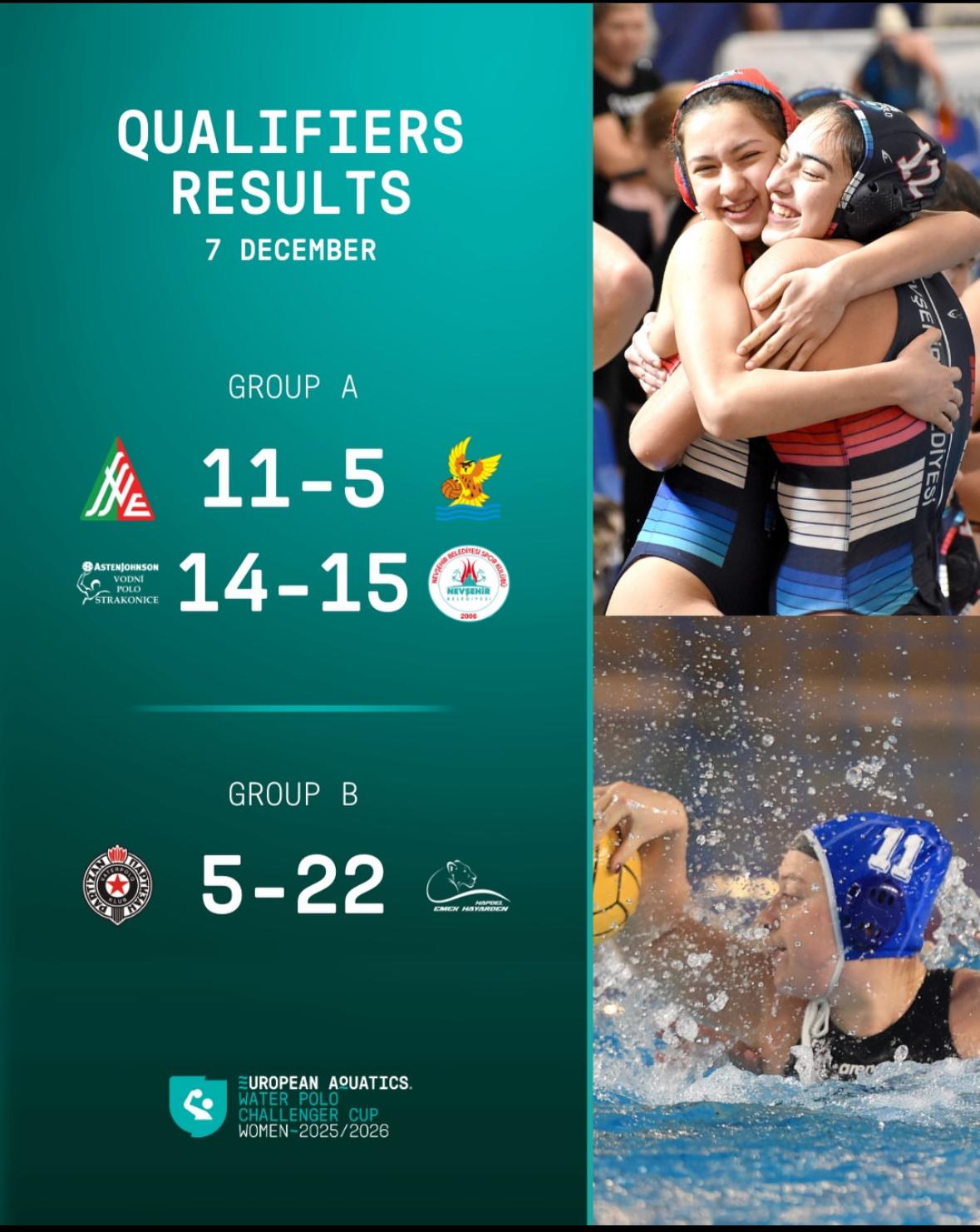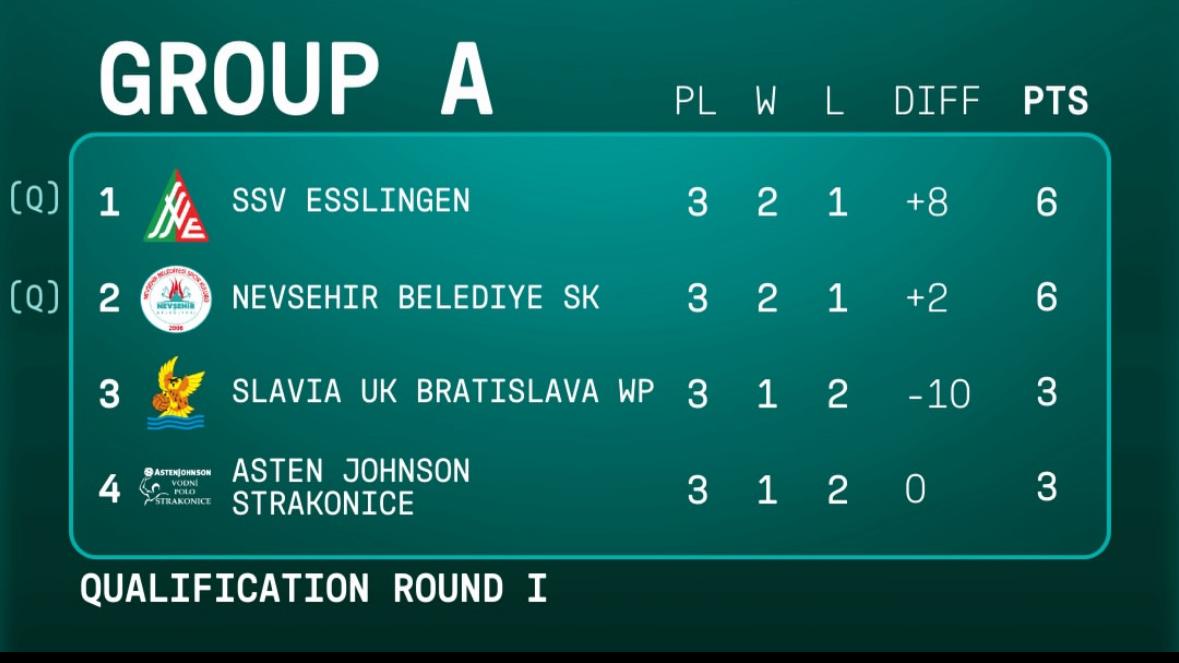 Nevşehir Belediyesi Spor Kulübü Kadın Sutopu Takımımız üçüncü ve son maçında Çekya ekibi Asten Johnson Strakonice’yi 15-14 yenerek 2. Tura yükseldi ve büyük bir başarı elde etti.