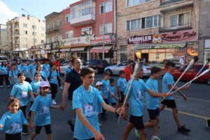 Belediye Başkanı Dr. Mehmet Savran ve başkan yardımcısı Furkan Feralan’ın da aralarında bulunduğu gençler buradan ellerinde meşaleler ile birlikte Gazi Stadı’na yürüdü.