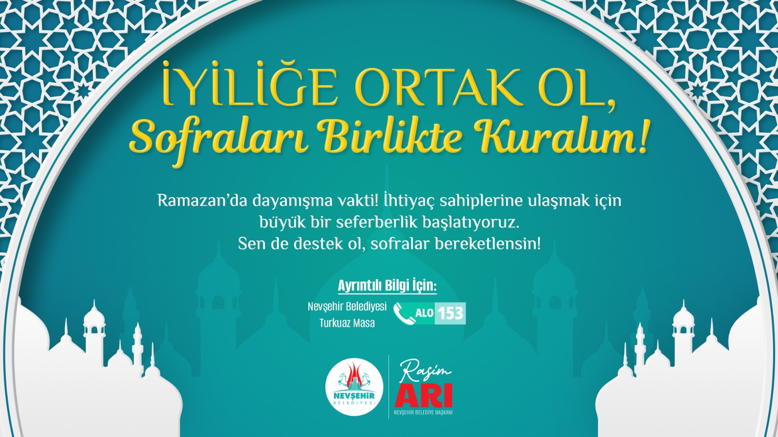 Nevşehir Belediyesi tarafından yapılan açıklamada “İyiliğe Ortak ol, Ramazan’da dayanışma vakti, İhtiyaç sahiplerine ulaşmak için büyük bir seferberlik başlatıyoruz. Sende destek ol sofralar bereketlensin” ifadeleri kullanıldı.