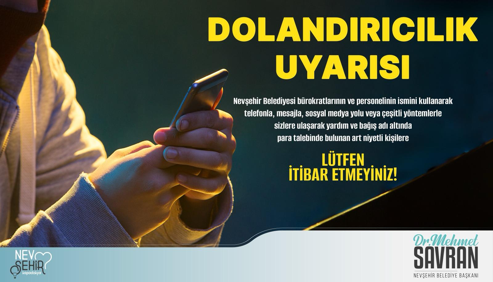 Nevşehir Belediyesi, kurumda görev yapan üst düzey yöneticilerin ve personellerin ismini kullanarak dolandırıcılık yapan art niyetli kişilere karşı vatandaşları uyardı.