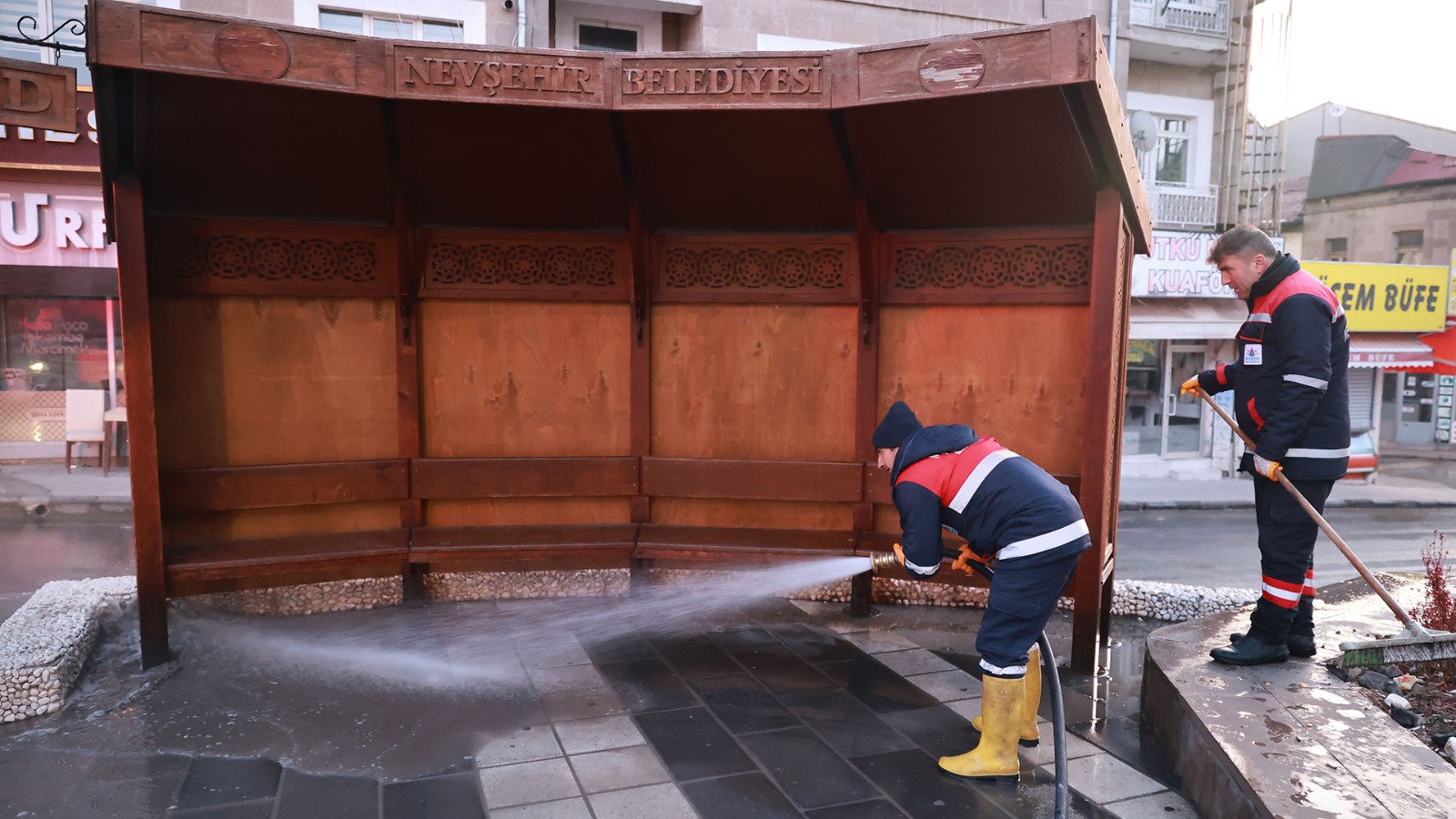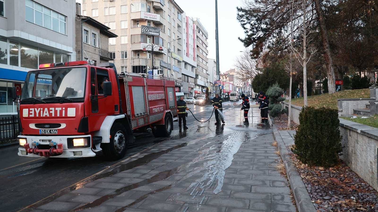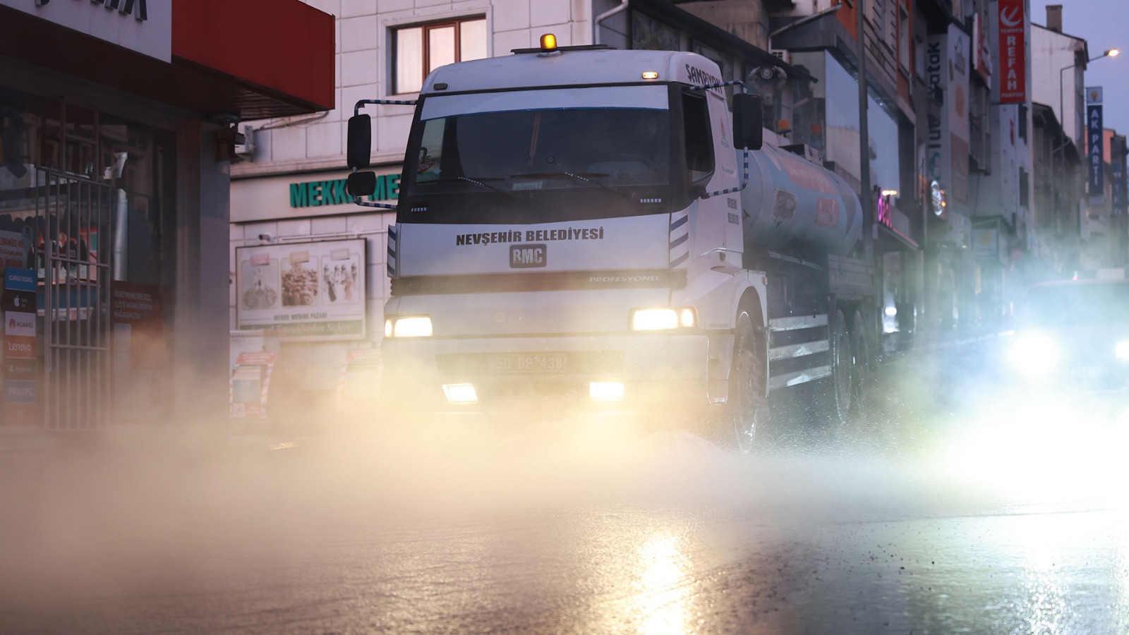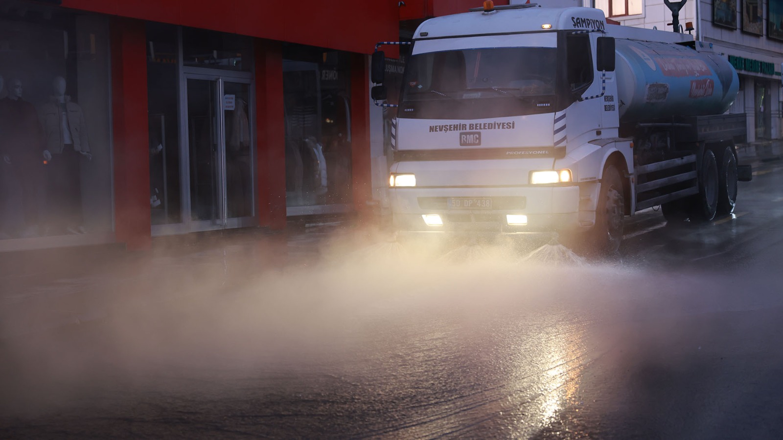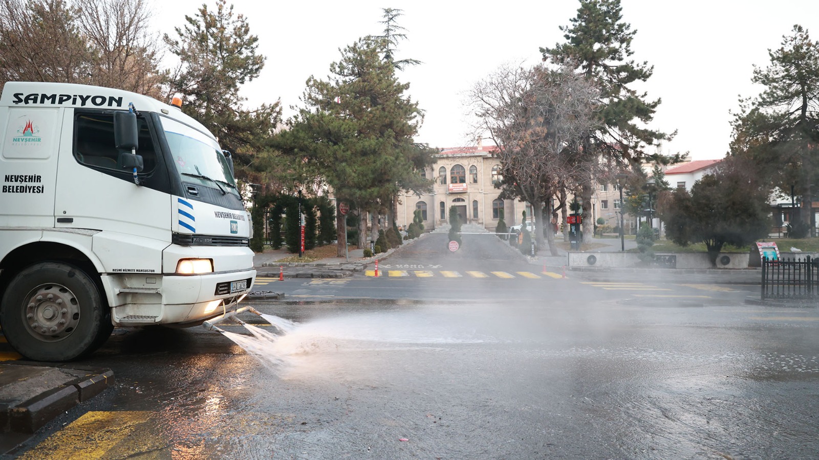 Nevşehir Belediyesi’ne bağlı birimlerin aktif rol aldığı ve çok sayıda belediye personeli ve araçların görev aldığı çalışmalarda, yaya kaldırımları ve yolları pırıl pırıl temizleyen ekipler, vakumlu süpürge araçları ile de detaylı temizlik yaptı.