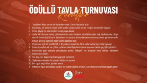 Nevşehir Belediyesi tarafından il oluşumuzun 70. Yılı etkinlikleri kapsamında ödüllü tavla turnuvası düzenlenecek. 14 Temmuz 2025 tarihinde gerçekleştirilecek olan turnuvada program ve eşleşmeler katılım sayısına göre belirlenecek. Nevşehir’in en yeni sosyal yaşam alanı NevMekan Pforzheim parkta düzenlenecek olan ödüllü tavla turnuvasında Birinci olan kişiye sıcak hava balonu, ikinci olan kişiye de at gezisi hediye edilecek. Ödüllü tavla turnuvasına katılmak isteyen vatandaşlarımız www.nevsehir.bel.tr web adresi üzerinden Gençlik ve Spor Hizmetleri Kurs başvuruları linki sosyal etkinlikler butonuna kayıt yaptırarak turnuvaya dahil olacak.