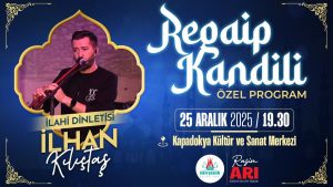 Nevşehir Belediyesi Kültür, Sanat ve Sosyal İşler Müdürlüğü ev sahipliğinde düzenlenecek Regaip Kandili Özel Programı 25 Aralık 2025 Perşembe günü saat 19.30’da Kapadokya Kültür ve Sanat Merkezi’nde yapılacak.