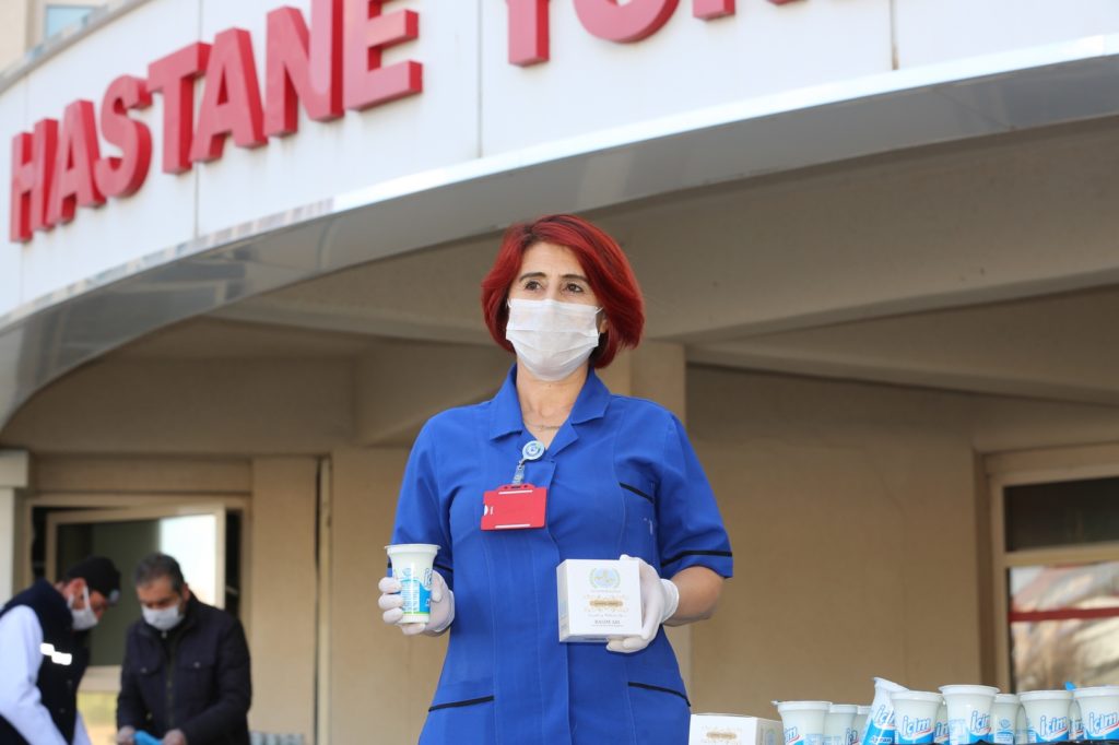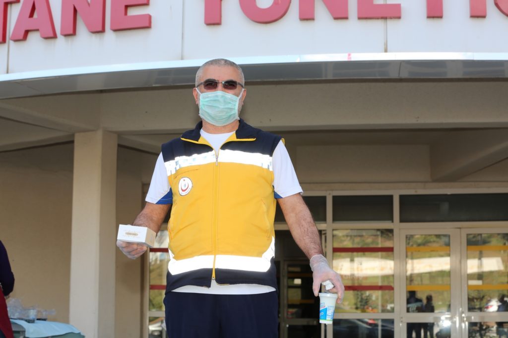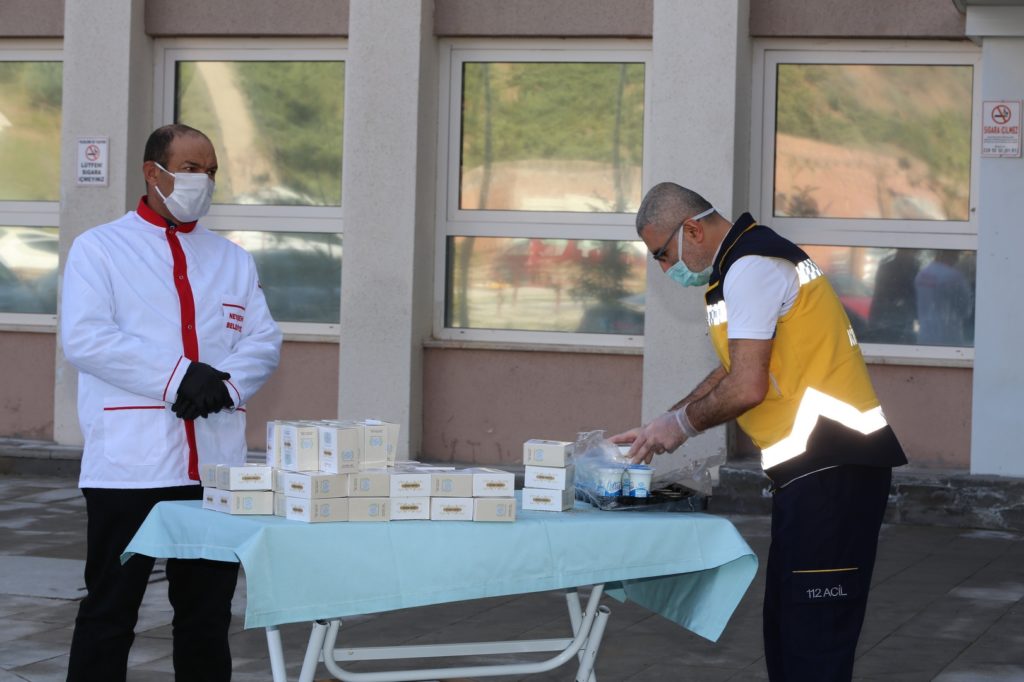 Dağıtım sırasında belediye görevlileri ve sağlık çalışanları sosyal mesafeyi korumaya özen gösterirken, yapılan ikramdan dolayı sağlık çalışanları Belediye Başkanı Rasim Arı’ya teşekkür etti.