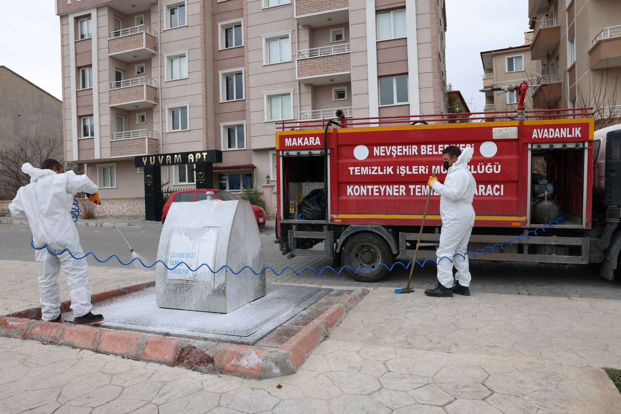 Nevşehir Belediyesi “Temiz Çevre Sağlıklı Toplum” projesi çerçevesinde kent merkezindeki tüm park ve yeşil alanlarda temizlik çalışmalarını aralıksız sürdürüyor. Ekipler, park ve yeşil alanlardaki temizlik çalışmalarının yanında yeraltı ve yerüstü çöp konteynerlerinde ilaçlama çalışması içinde titizlikle çalışıyor.