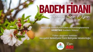 Badem Fidanlarını ücretsiz almak isteyen bütün vatandaşlarımız Nevşehir Belediyesi Park ve Bahçeler Müdürlüğü’nden temin edebilir.