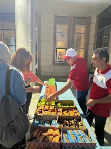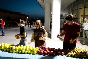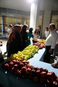 NEVÜ Damat İbrahim Paşa Yerleşkesi içerisinde yer alan Hoca Ahmed Yesevi Kütüphanesi içerisinde kurulan stantta her akşam öğrencilere kuru yemiş, meyve, gofret, börek, gazoz, kuru meyve, meyve suyu, kahve ve çay ikram ediliyor.