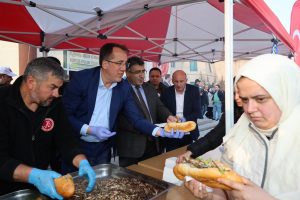 Şölen saatinde ızgaranın başına geçerek hamsileri pişiren Belediye Başkanı Savran ve NEVÜ Rektörü Aktekin, pişirdikleri hamsileri öğrencilere ve katılımcılara ikram ettiler.