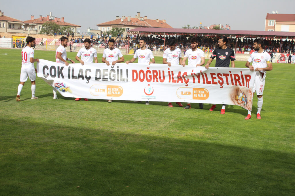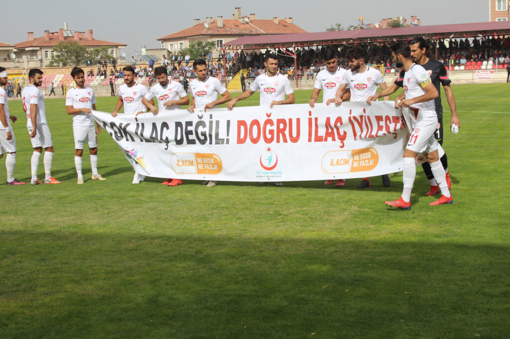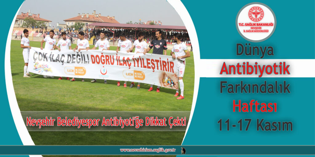 TFF Spor Toto 3. Lig 3. Grupta 6. Hafta Nevşehir Belediyespor, kendi evinde Gazi Stadyumunda oynadığı karşılaşmada rakibi Modafenspor maçına çıkarken 11-17 Kasım Dünya Antibiyotik Farkındalık Haftası etkinlikleri kapsamında “Antibiyotik Kullanımına” dikkat çekmek için Nevşehir İl Sağlık Müdürlüğünün “Çok ilaç Değil, Doğru İlaç İyileştirir” pankartı ile sahaya çıktılar.