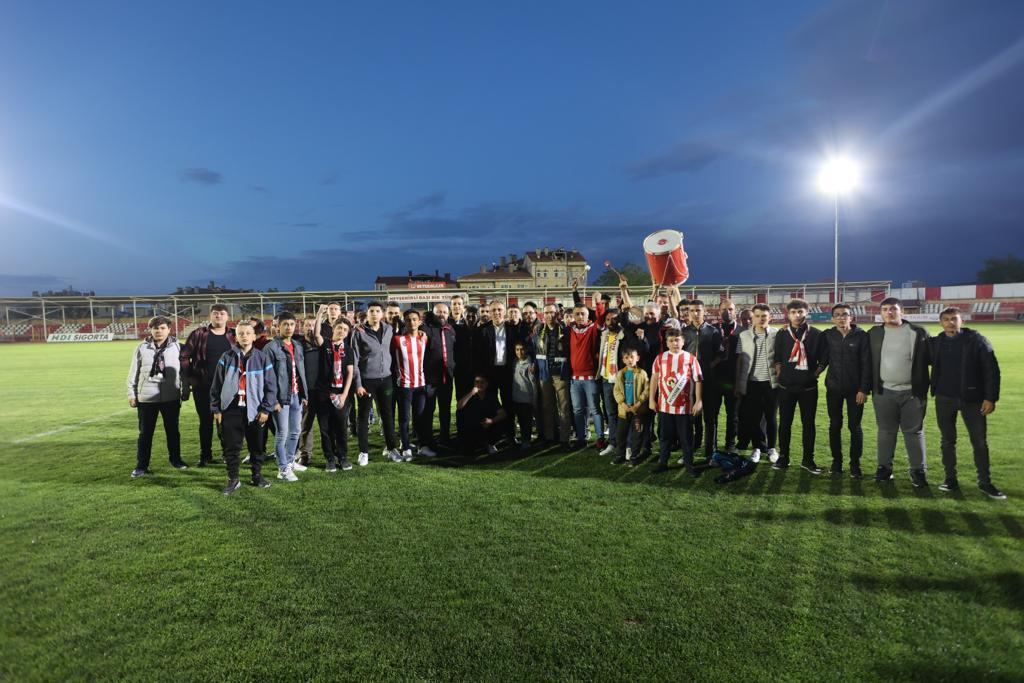 Antrenman sonunda oyunculara baklava ikramında bulunan Belediye Başkanı Savran, ligi 5. sırada tamamlayarak play-off oynamaya hak kazanan oyuncuları ve teknik heyeti tebrik etti.