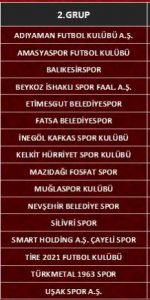 Adıyaman FK, Amasyaspor FK, Balıkesirspor, Beykoz İshaklıspor, Etimesgut Belediyespor, Fatsa Belediyespor, İnegöl Kafkas SK, Kelkit Hirriyet SK, Mazıdağı Fosfatspor, Muğlaspor Kulübü, Nevşehir Belediyespor, Silivrispor, Smart Holding A.Ş, Tire 2021 FK, Türkmetal 1936 Spor ve Uşak Spor A.Ş.