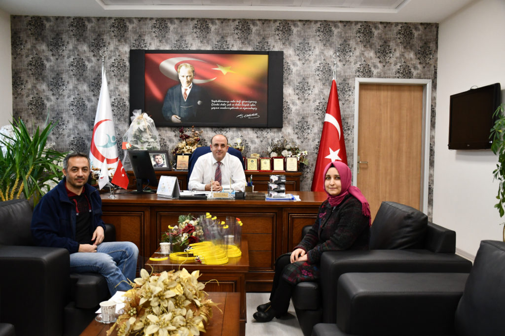 Nevşehir BİLSEM Müdürü Ahmet Emre Ergin, İl Sağlık Müdürü Dr. Rahim Ünlübay’ı makamında ziyaret ederek üretimini yaptıkları ilk parti yüz koruyucu siperlikleri ve kendi imkanları ile aldığı Dijital Ateş Ölçerleri teslim etti.