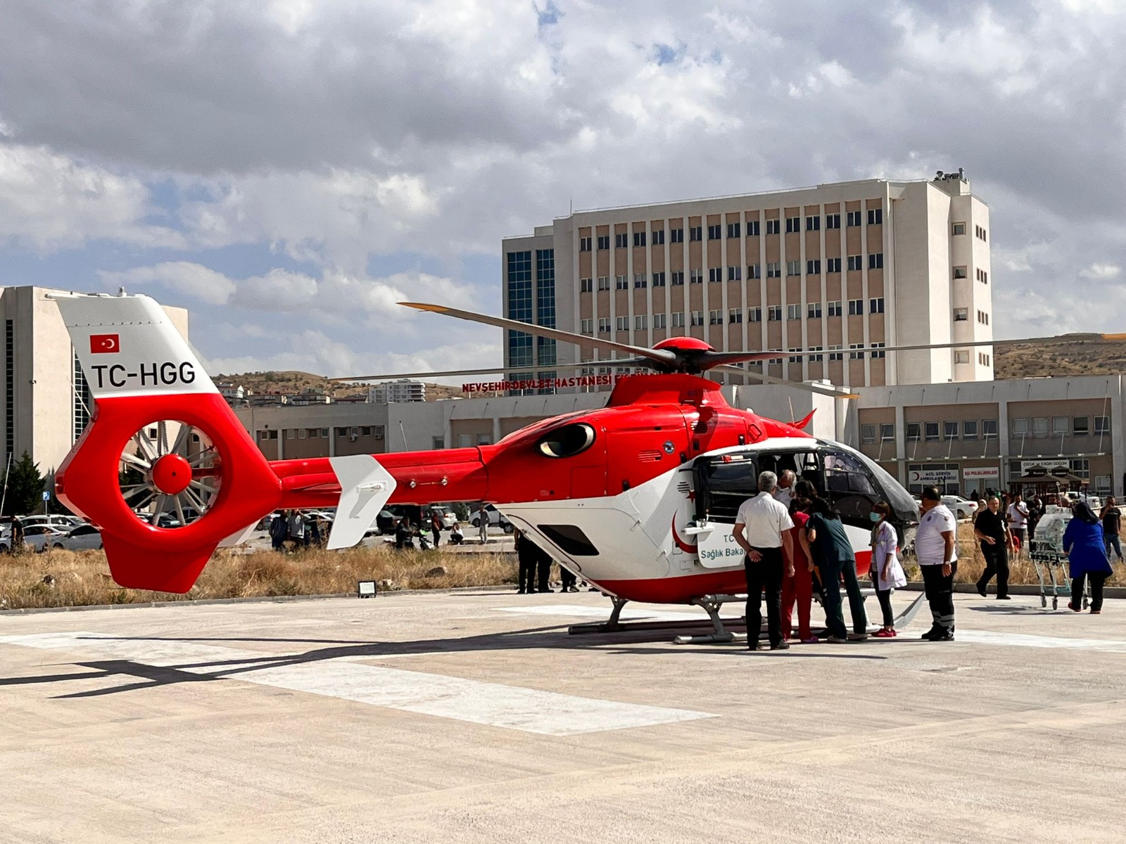 Nevşehir Devlet Hastanesi Kadın Doğum Servisinde erken olarak doğan bir günlük Bebek M. Acil Sağlık Bakanlığı’nın hizmete sunduğu Helikopter Hava Ambulans ile Konya Selçuk Üniversitesi Tıp Fakültesi Yenidoğan Yoğun Bakım Servisine sevk edildi.