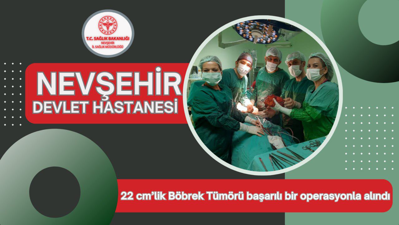 Nevşehir Devlet Hastanesi Üroloji Polikliniği ve Genel Cerrahi Polikliniklerine karın ağrısı ve şişlik şikayeti ile müracaat eden 70 yaşındaki hasta Ali Kantürk yapılan ileri tetkik ve MR görüntüleme sonucun da hastanın sağ böbreğin de 22 cm boyutunda tümör olduğu tespit edilip ameliyat kararı alındı.