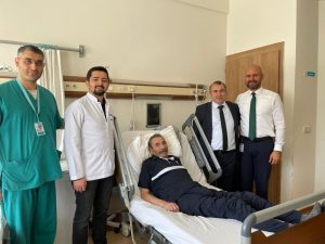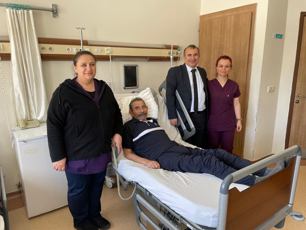 Nevşehir Devlet Hastanesi Başhekimi Op. Dr. Mehmet Mustafa Çetin hastayı odasında ziyaret edip geçmiş olsun dileklerinde bulundu. Ameliyat ekibini, Üroloji Servis sorumlu hemşireleri Filiz Açıkgöz, Nezaket Kocabayraktar ve Servis hemşirelerini tebrik etti.