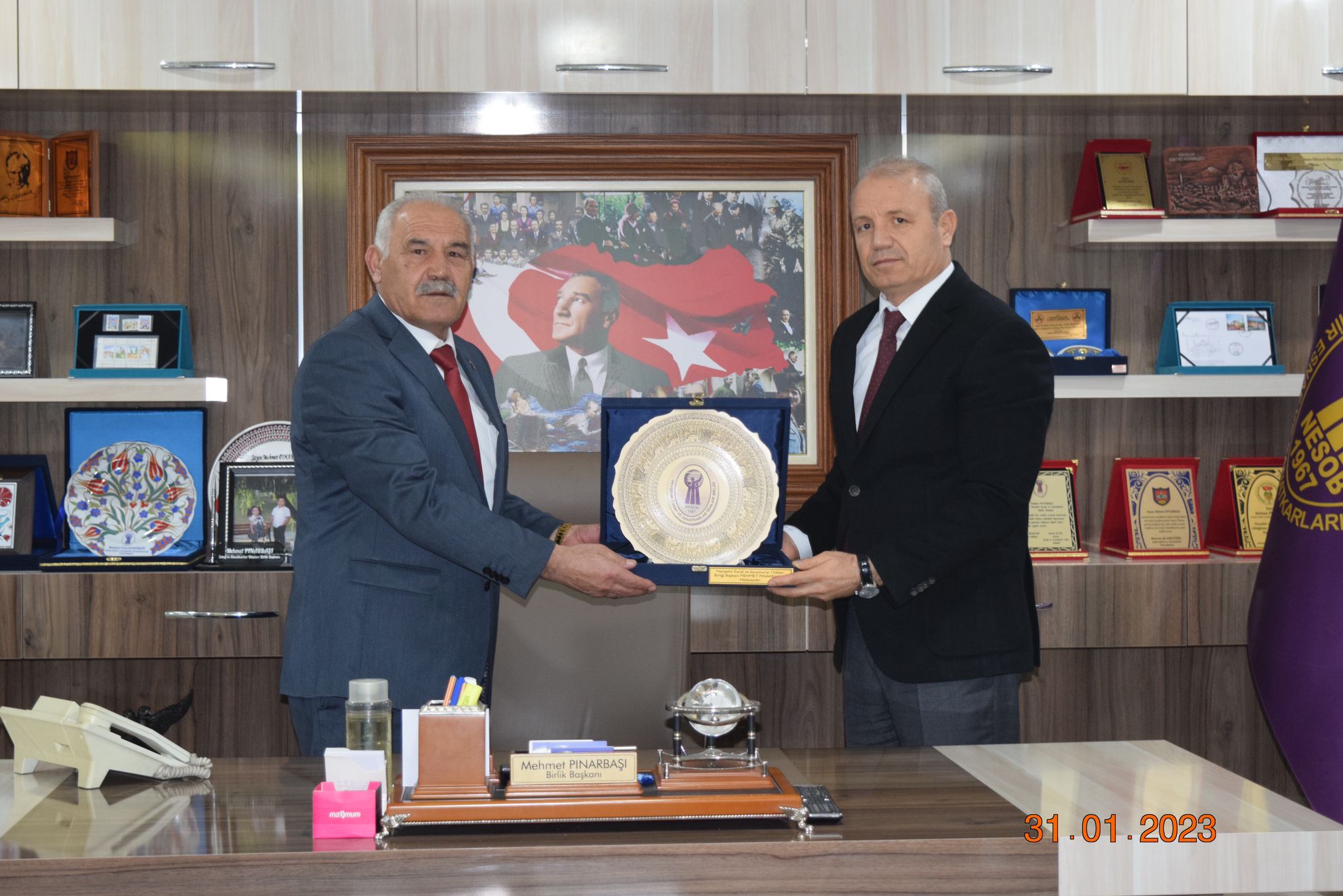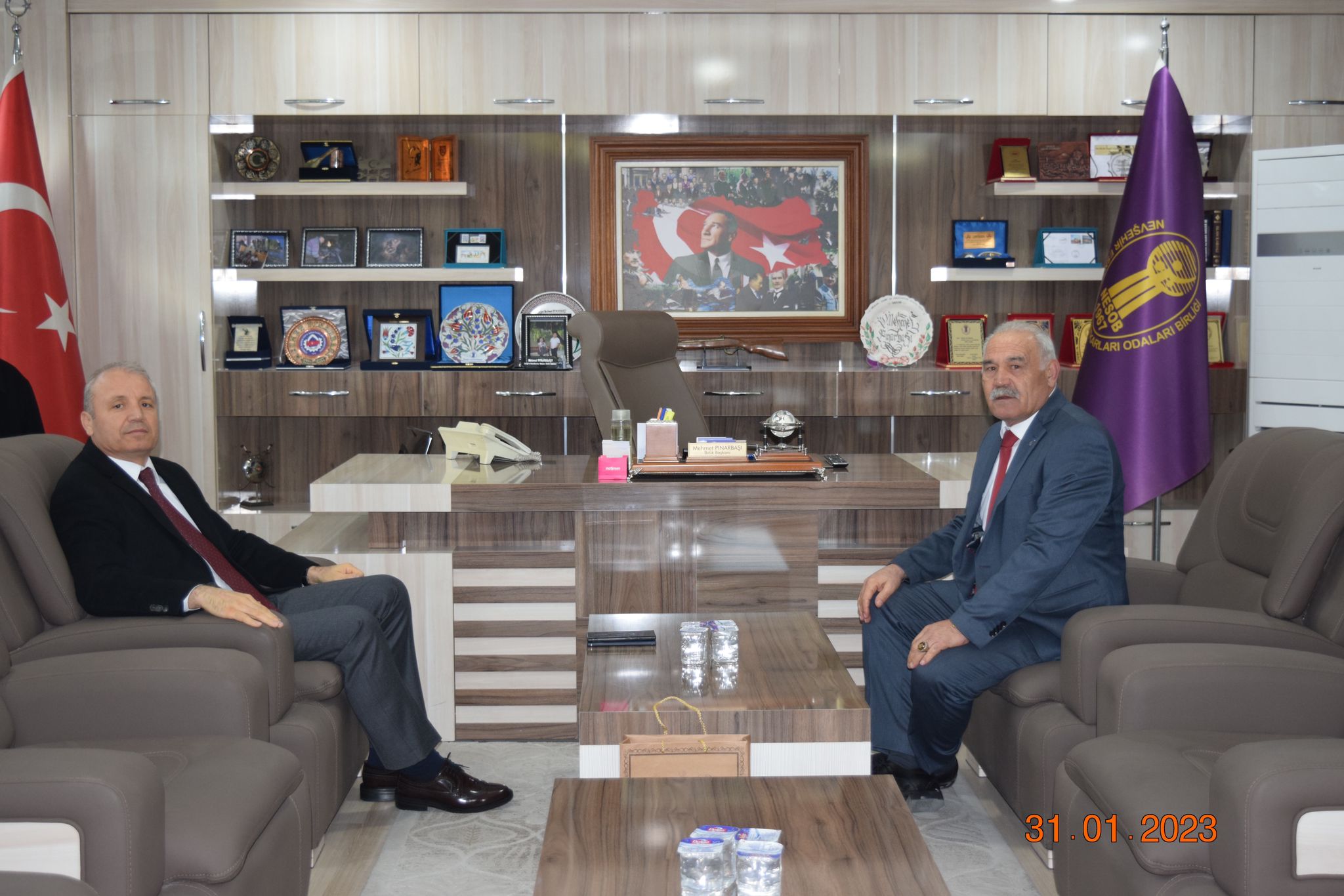 Nevşehir Emniyet Müdürü Ali Loğoğlu, Nevşehir Esnaf ve Sanatkarlar Odaları Birliği Başkanı Mehmet Pınarbaşı’ yı makamında ziyaret etti.