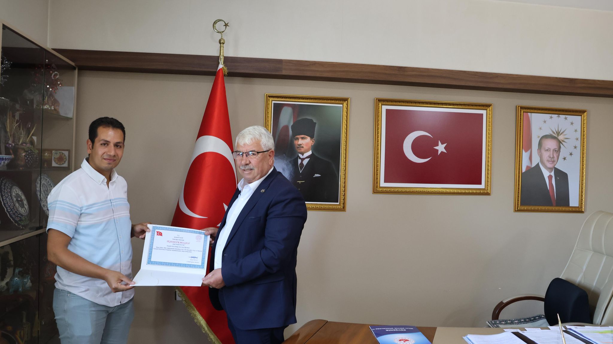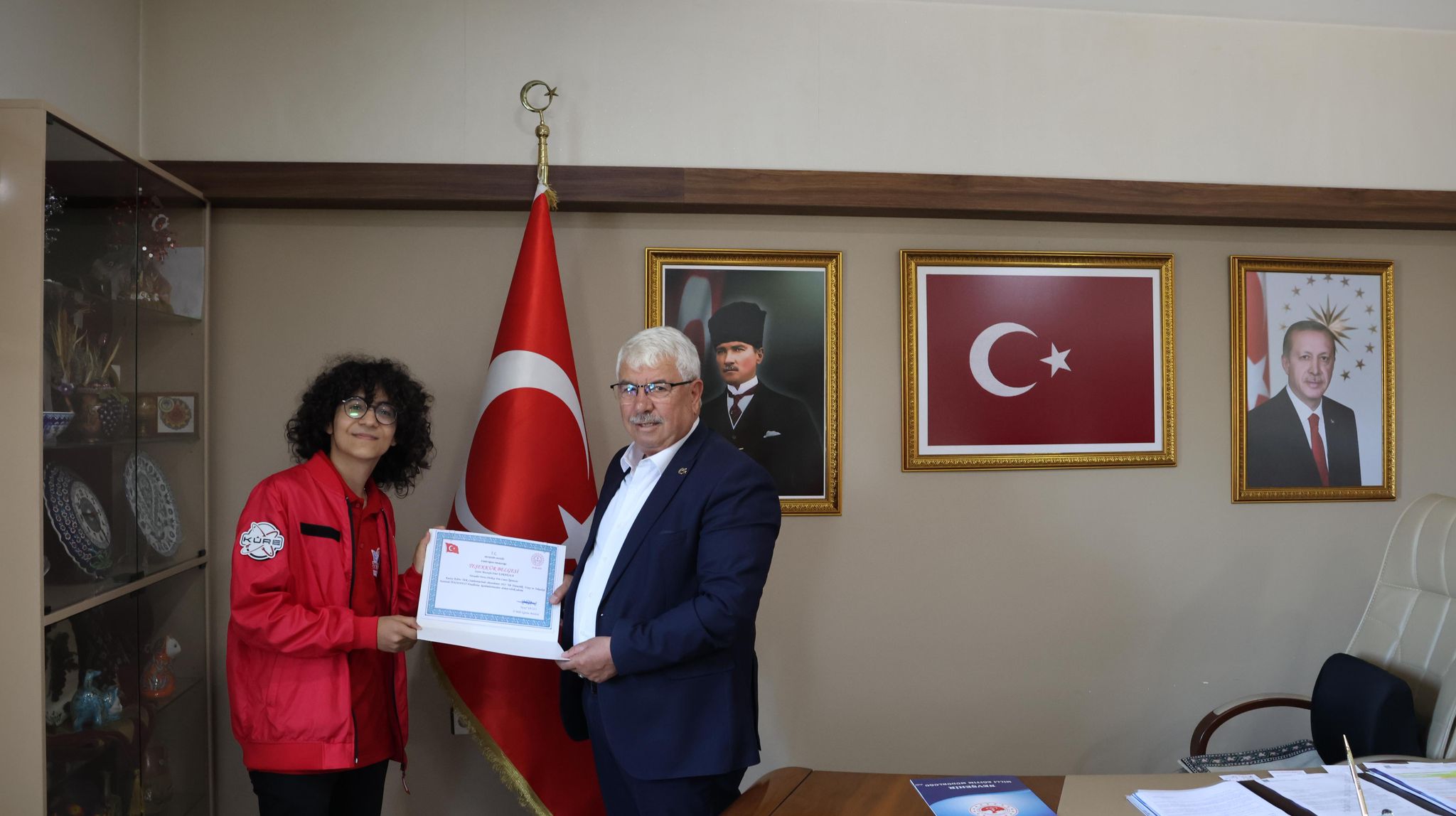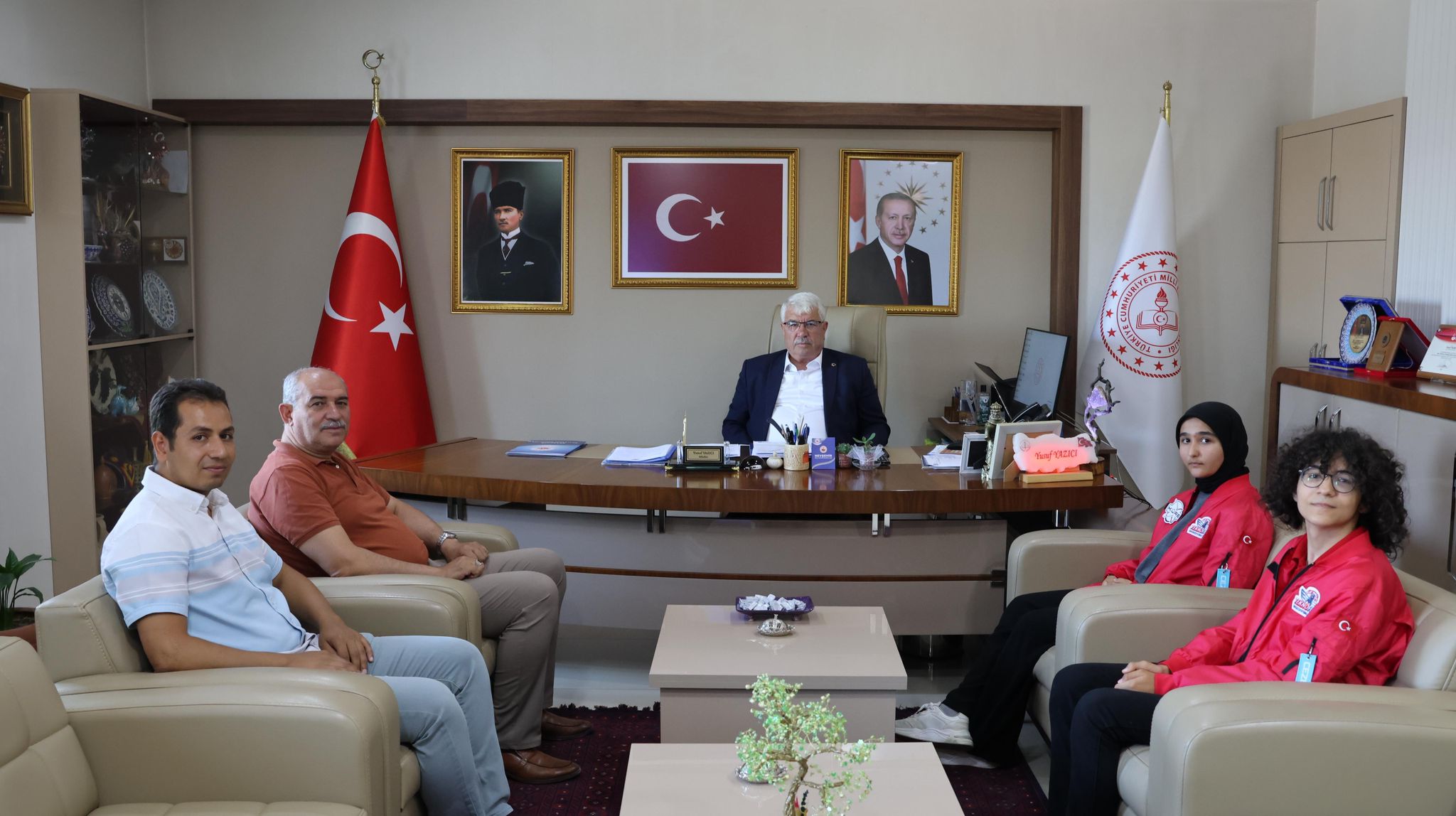 Nevşehir Fevzi Dirikoç Fen Lisesi öğretmen ve öğrencileri; İl Millî Eğitim Müdürü Yusuf Yazıcı’yı ziyaret ettiler. Ziyaret kapsamında İl Müdürüne, 1-4 Mayıs 2025 tarihleri arasında Kuzey Kıbrıs Türk Cumhuriyeti’nde düzenlenen Havacılık, Uzay ve Teknoloji Festivali finallerinde, Uçan Araba Simülasyon Yarışması’na katılarak Nevşehir’i başarıyla temsil eden Nevşehir Fevzi Dirikoç Fen Lisesi “Meteris50” takımı üyeleri Zeynep Sude Demir, Mustafa Emir Karakoca, danışman öğretmen Habib Huzur ve okul müdürü Ali Can Çağlak tarafından proje hakkında bilgi verildi. Yazıcı, misafirlere nazik ziyaretleri ve ilgileri için teşekkür ederek öğrencilere bilim ışığında yaptıkları yolculukta başarılar diledi.
