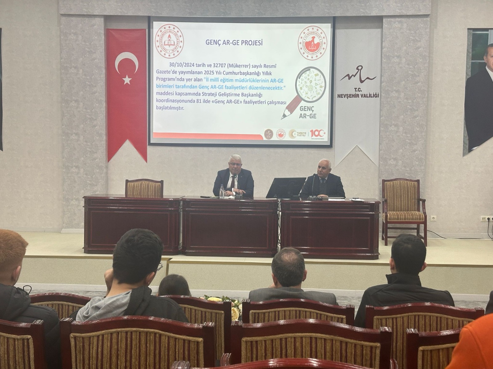 ”2025 Yılı Cumhurbaşkanlığı Yıllık Programı’nda yer alan İl Millî Eğitim Müdürlüklerinin AR-GE birimleri tarafından Genç AR-GE faaliyetleri düzenlenecektir.” maddesi kapsamında Millî Eğitim Bakanlığı Strateji Geliştirme Başkanlığı koordinasyonunda 81 ilde “Genç AR-GE” faaliyetleri gerçekleştirilecektir. İl Millî Eğitim Müdürlükleri AR-GE birimleri tarafından gerçekleştirilecek faaliyetlerde dezavantajlı gruplarda yer alan öğrenciler başta olmak üzere tüm öğrencilerin erken yaşlardan itibaren yetenek ve kapasitelerinin keşfedilerek bilimsel, teknolojik ve mesleki alanlarda kabiliyetlerini geliştirebilecekleri çalışmalara yönlendirilmesi amaçlanmaktadır. Bu kapsamda Nevşehir Valiliği toplantı salonunda İl Millî Eğitim Müdürü Yusuf Yazıcı başkanlığında, şube müdürü Feyyaz Solak ve AR-GE biriminin katılımıyla il Genç AR-GE ekibi ilk toplantısını gerçekleştirdi.