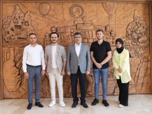 Nevşehir Genç Kızılay Başkanı Turgut Aydın ve beraberindeki heyet, Nevşehir Hacı Bektaş Veli Üniversitesi (NEVÜ) Rektörü Prof. Dr. Semih Aktekin’i ziyaret etti.