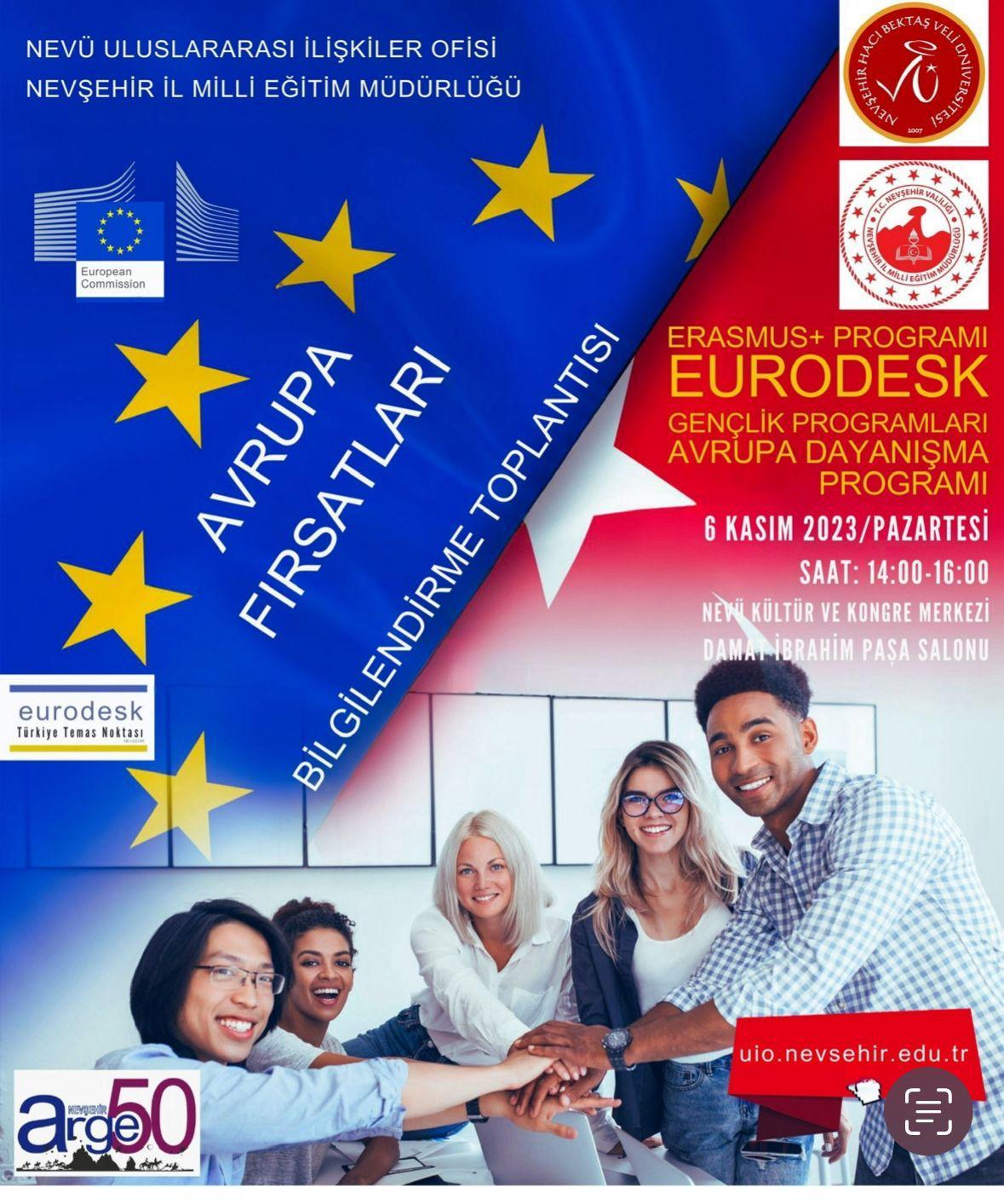 Eurodesk Temas Noktası olarak Nevşehir Milli Eğitim Müdürlüğü, Erasmus+ fırsatlarını tanıtmak ve kültürel alışverişi teşvik etmek amacıyla 6 Kasım 2023 Pazartesi günü Nevşehir Hacı Bektaş Veli Üniversitesinde öğrencilere, öğretim görevlileri ve diğer personellere Avrupa Fırsatları Bilgilendirme Toplantısı düzenledi.